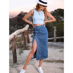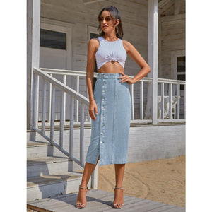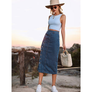 Button Down Denim Skirt