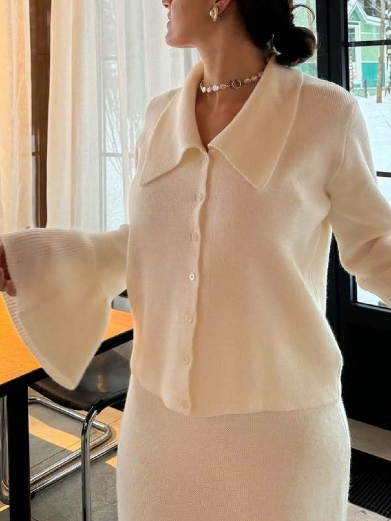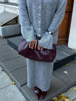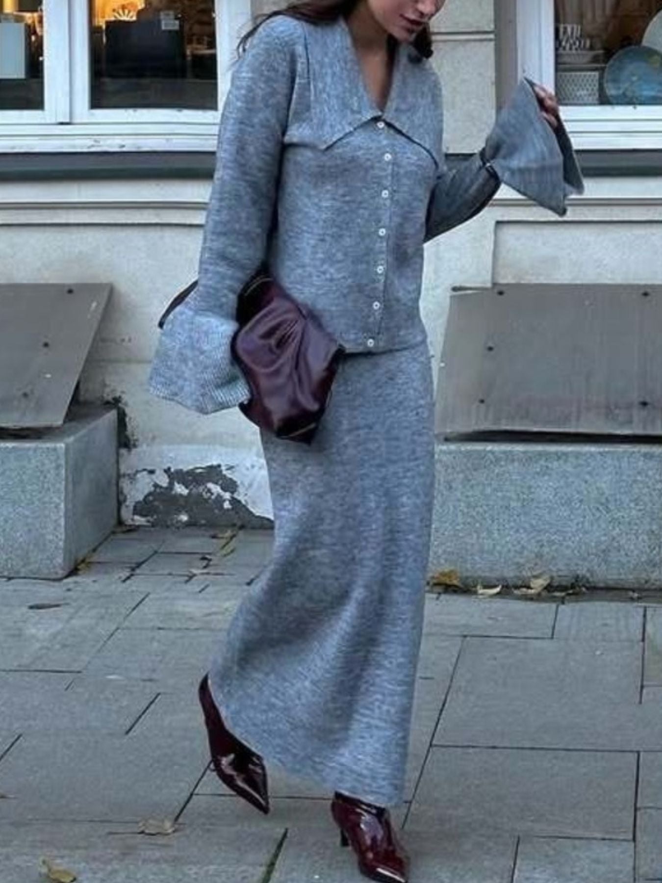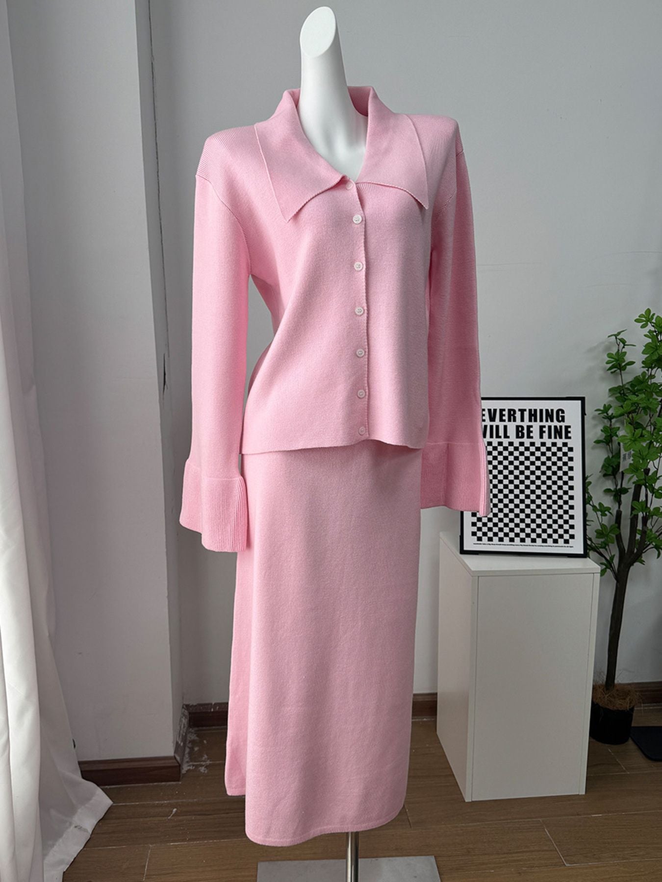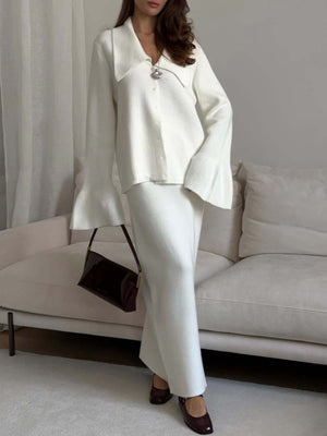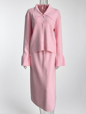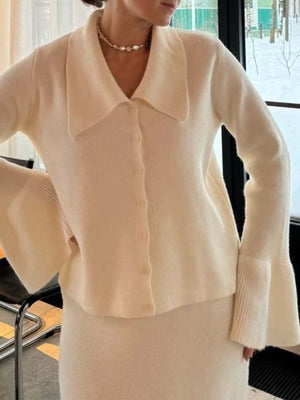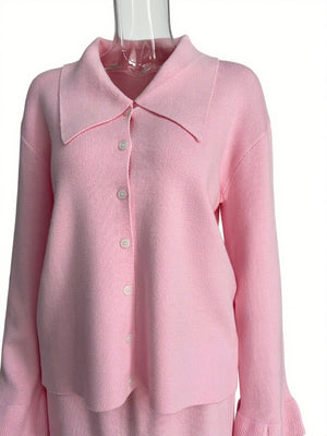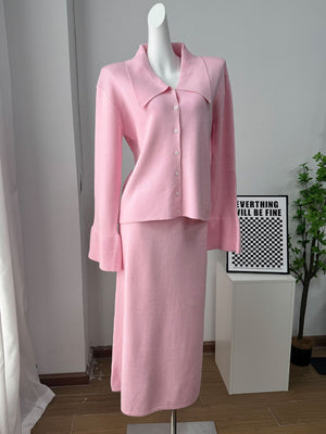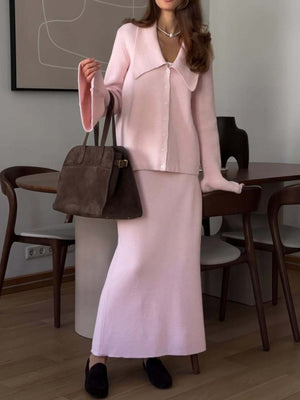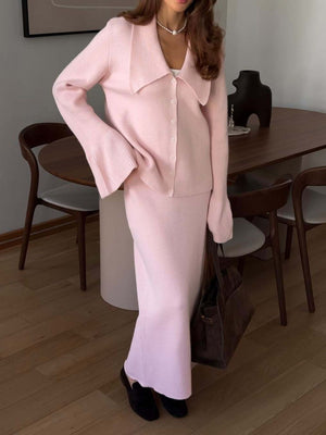 Button Down Long Sleeve Cardigan and Skirt Knit Set