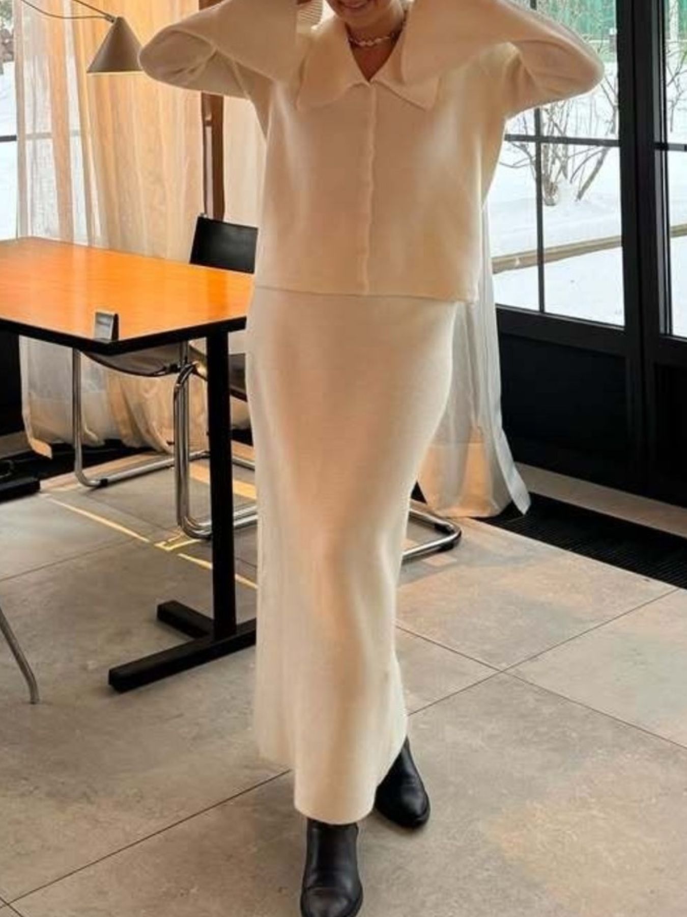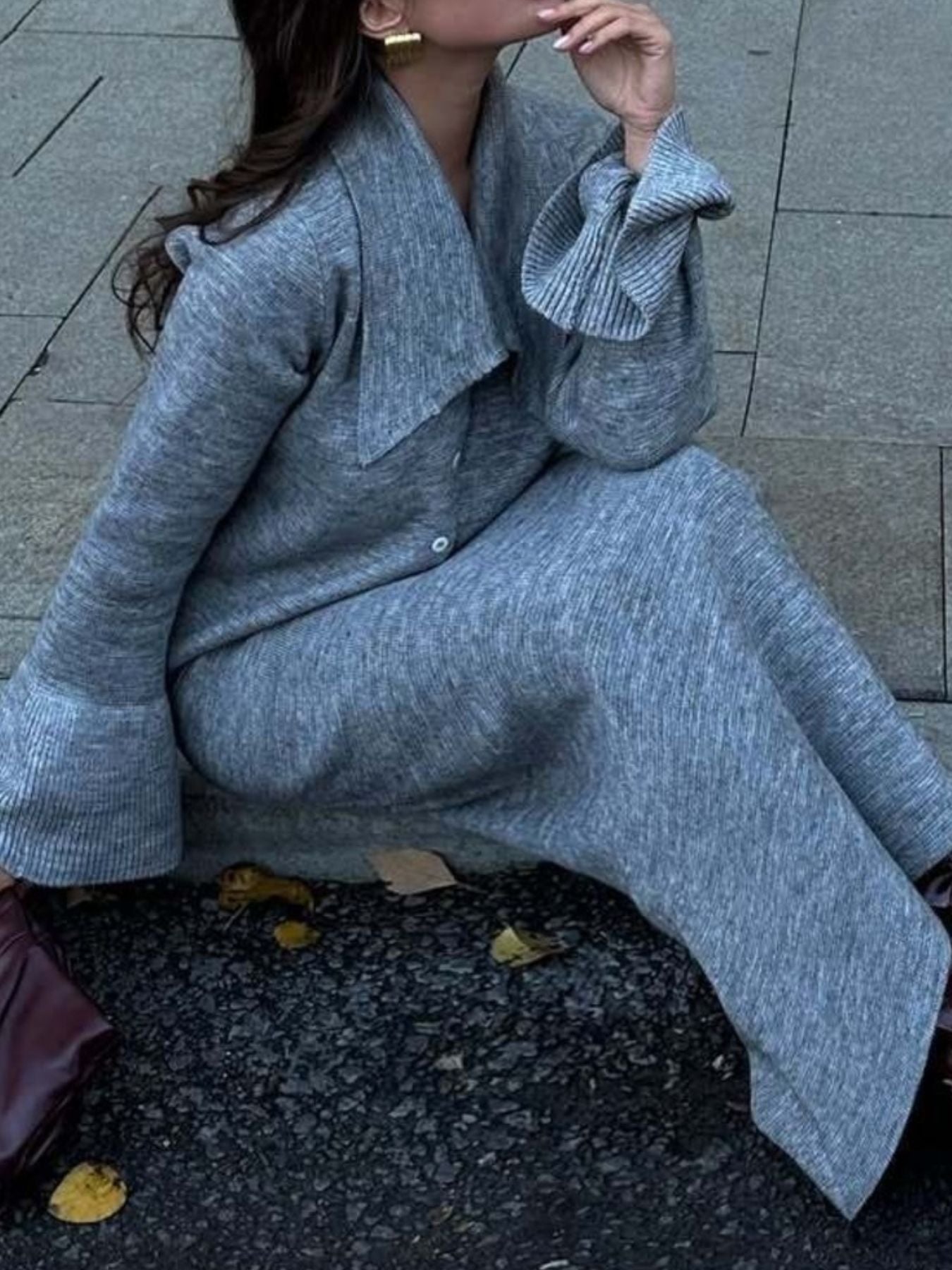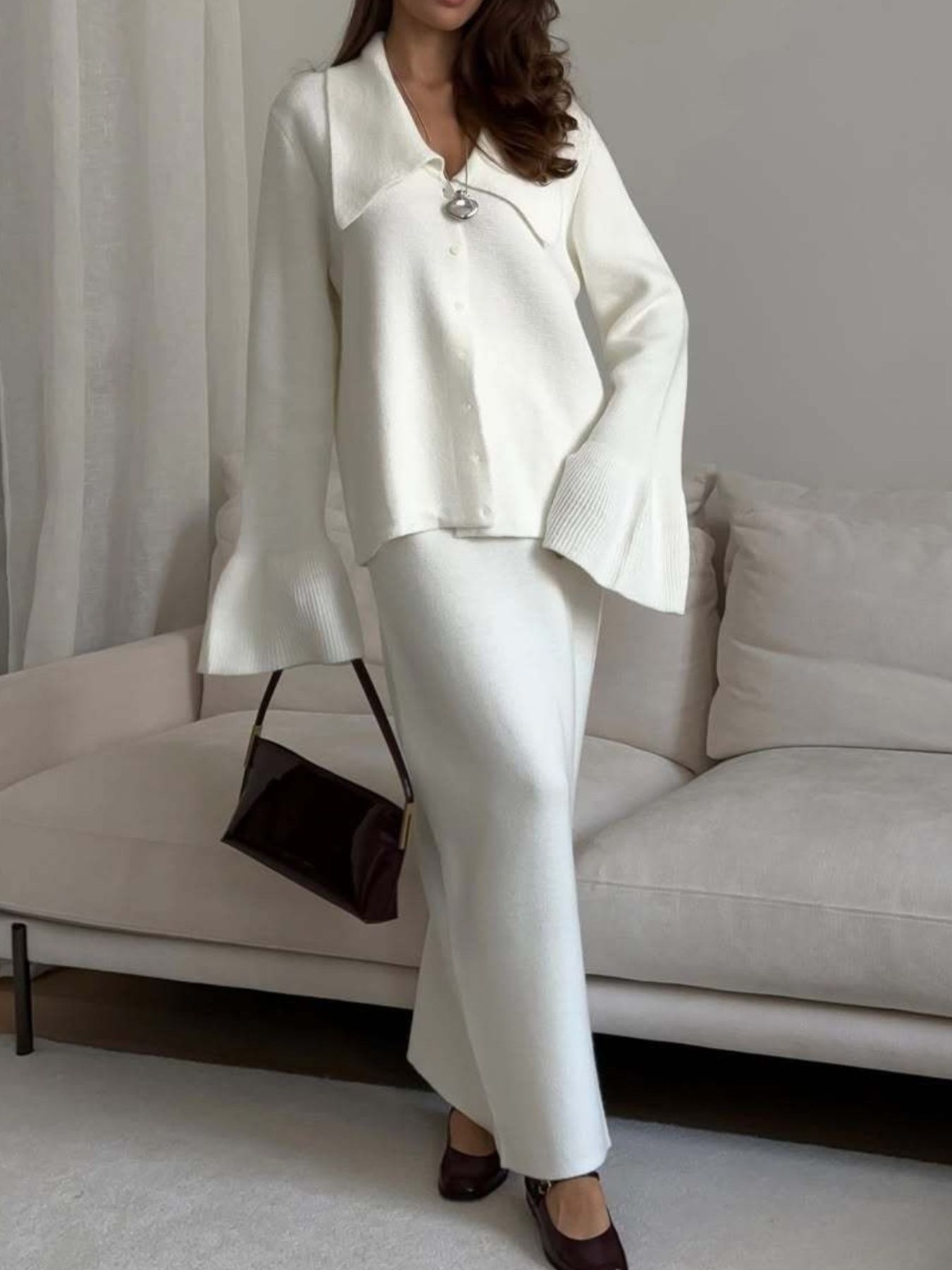Button Down Long Sleeve Cardigan and Skirt Knit Set