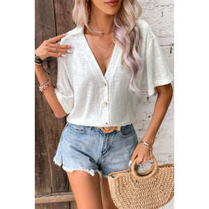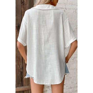 S: front length 24 in, shoulder 3 in, bust 43 in, sleeve length 8 in