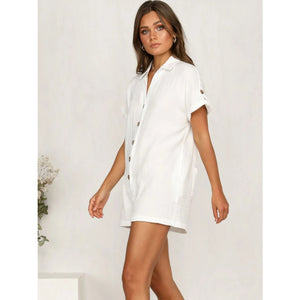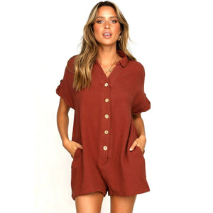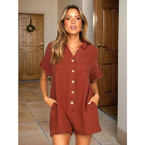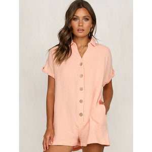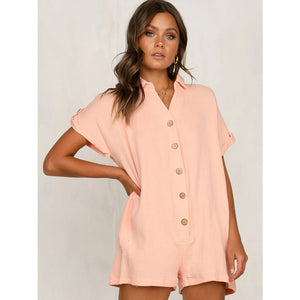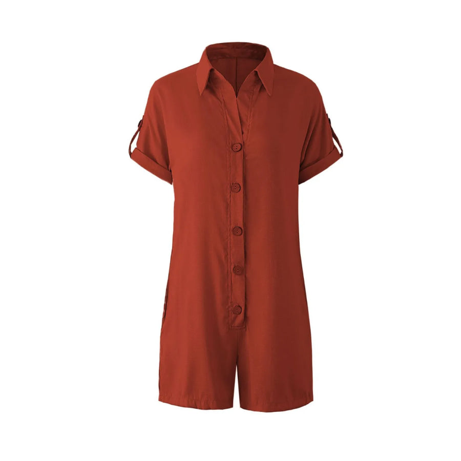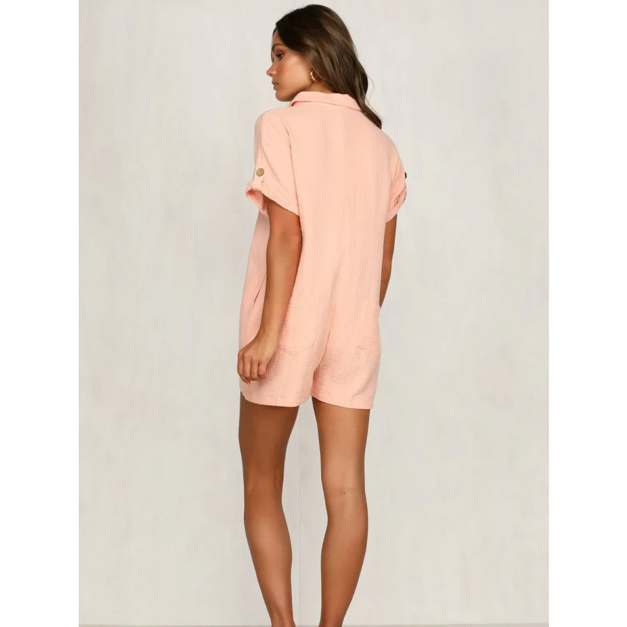 Button Front Short Sleeve Romper
