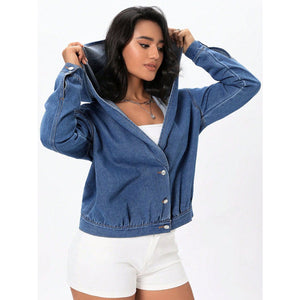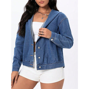 Button Up Hooded Denim Top
