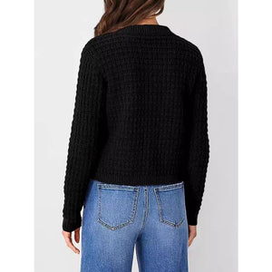 Button Up Round Neck Long Sleeve Cardigan