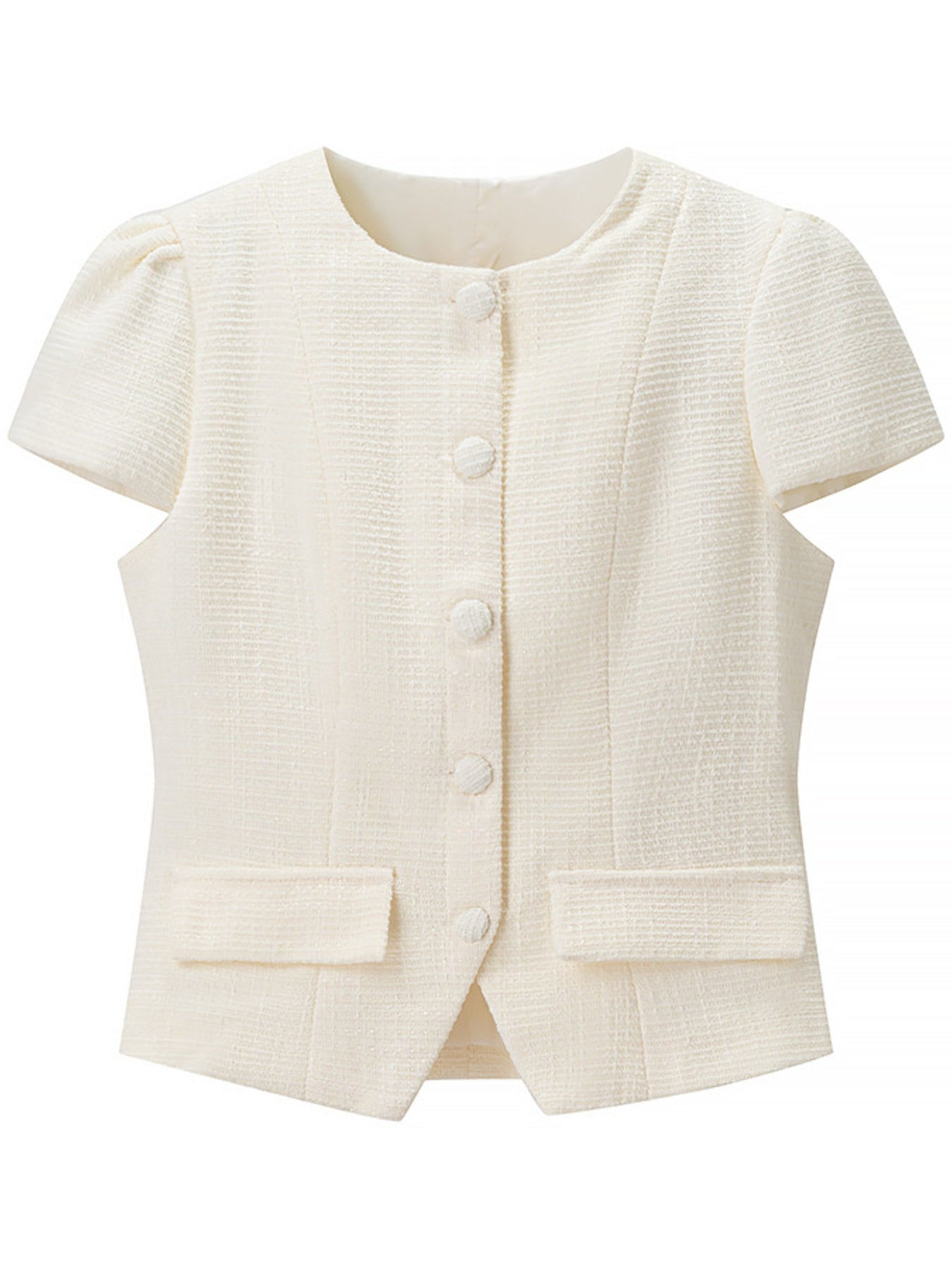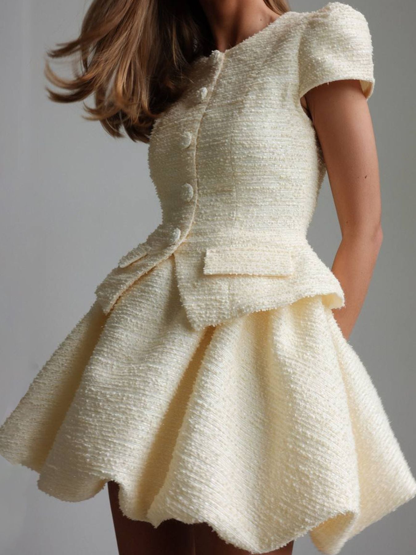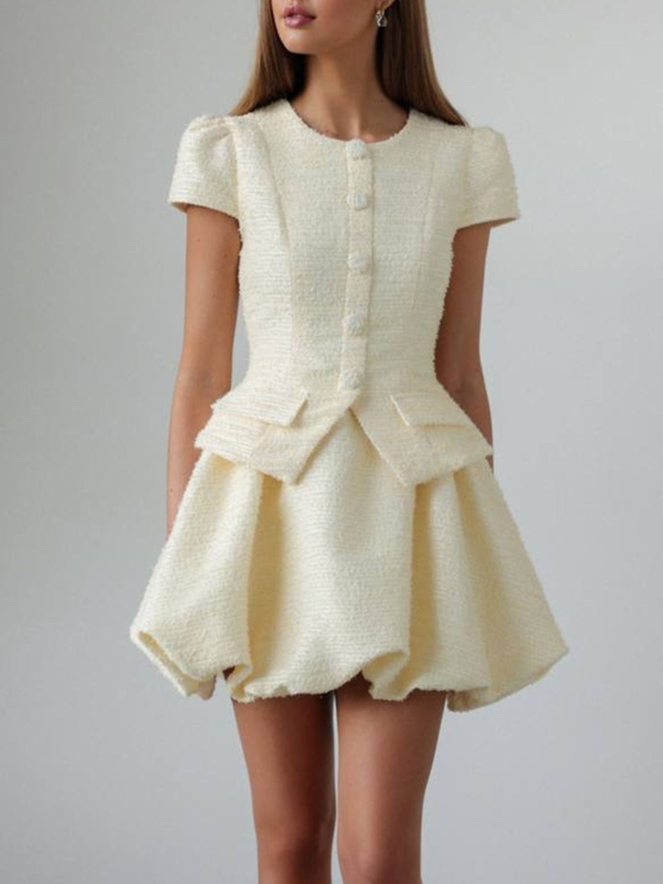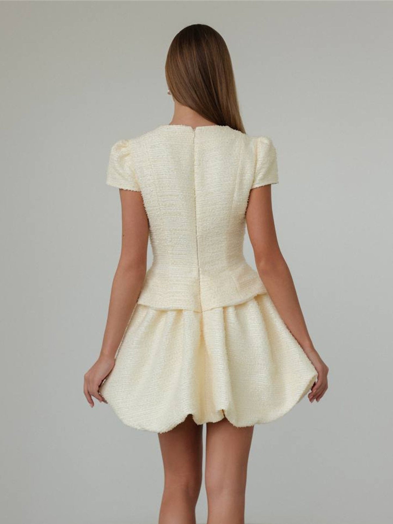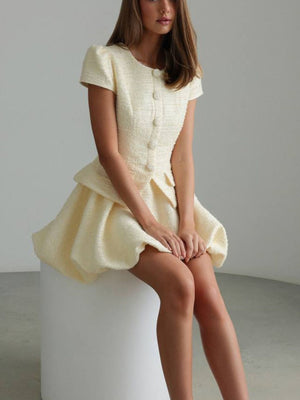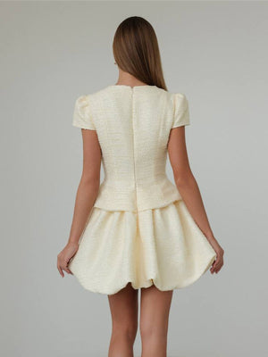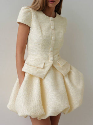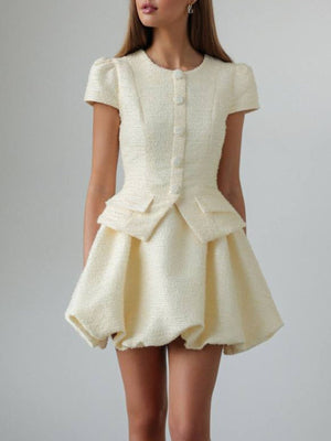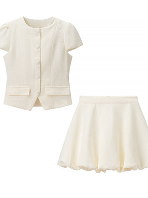 Button Up Short Sleeve Top and Bubble Hem Skirt Set