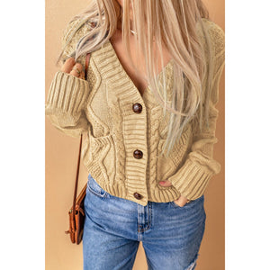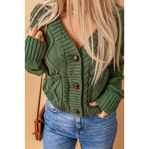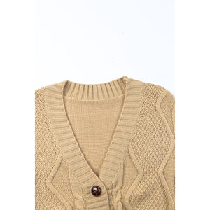Cable-Knit Button Down V-Neck Cardigan