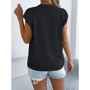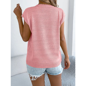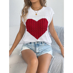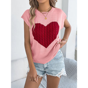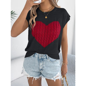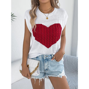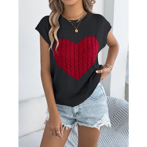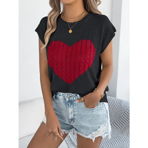 Cable Knit Heart Round Neck Cap Sleeve Knit Top