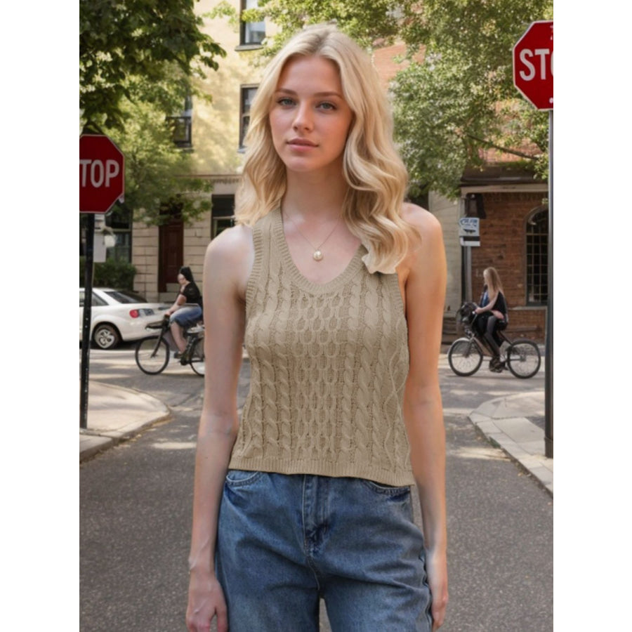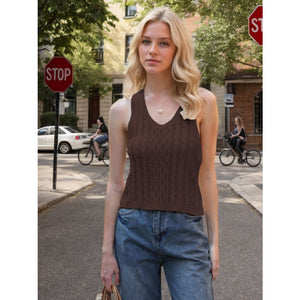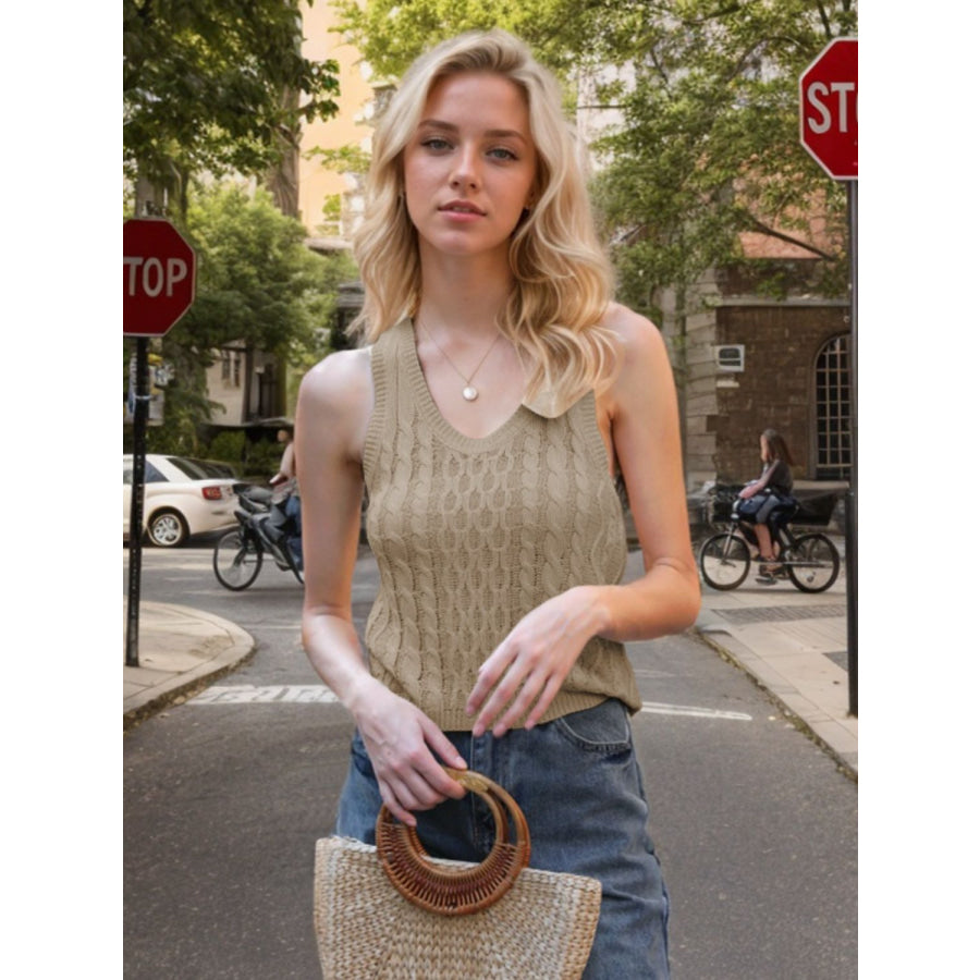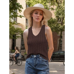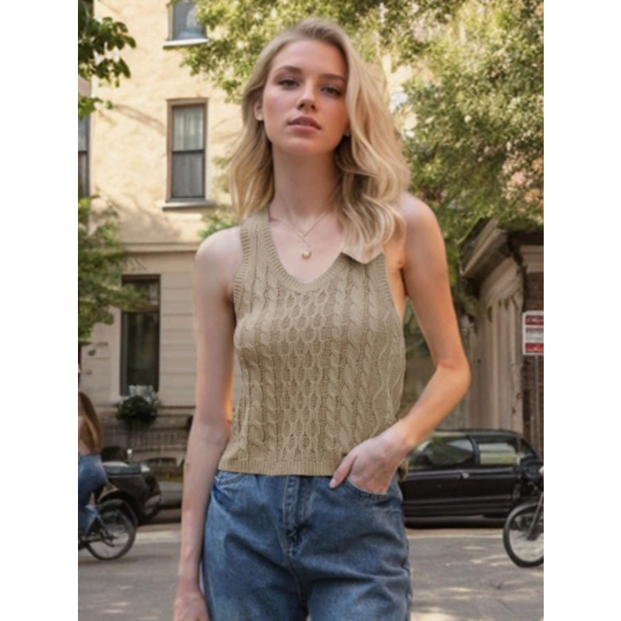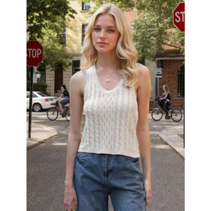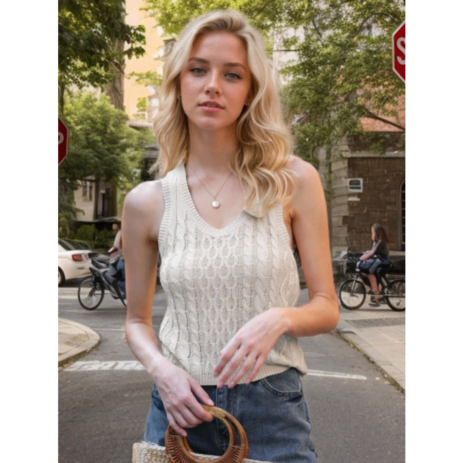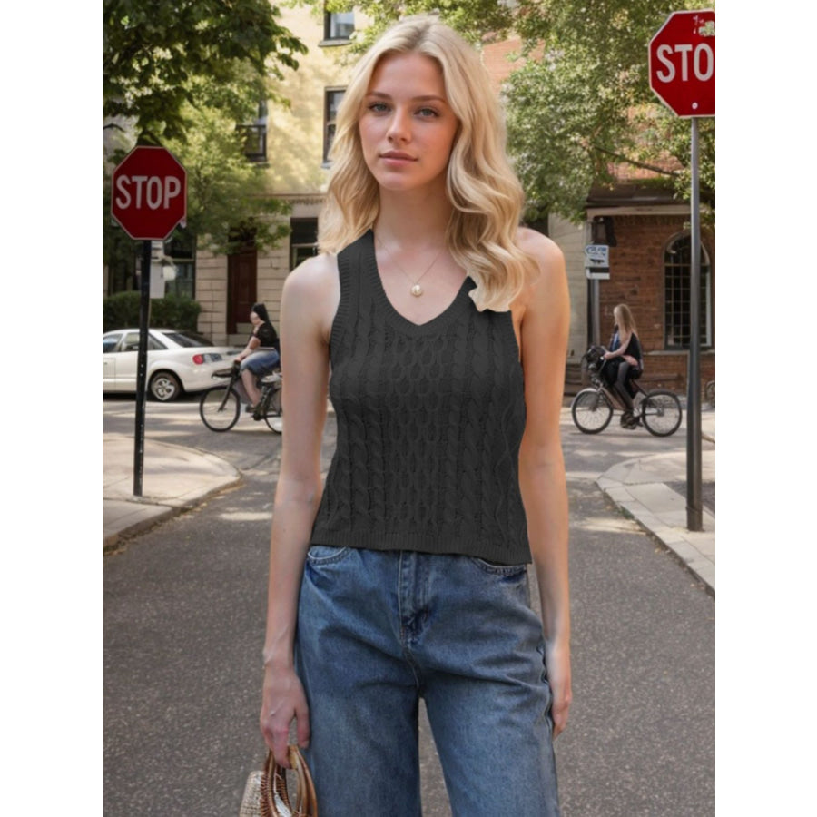 Cable-Knit V-Neck Knit Tank