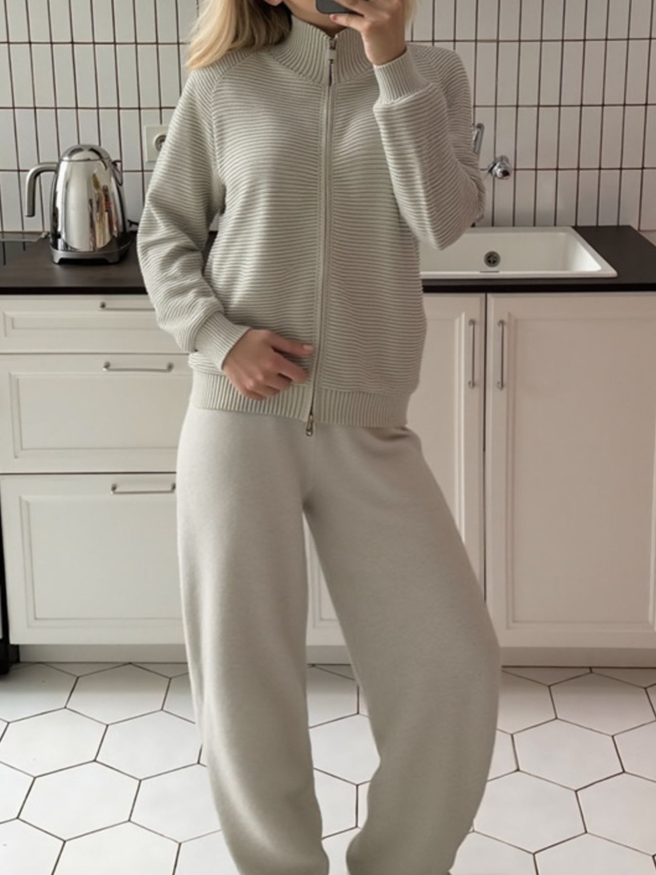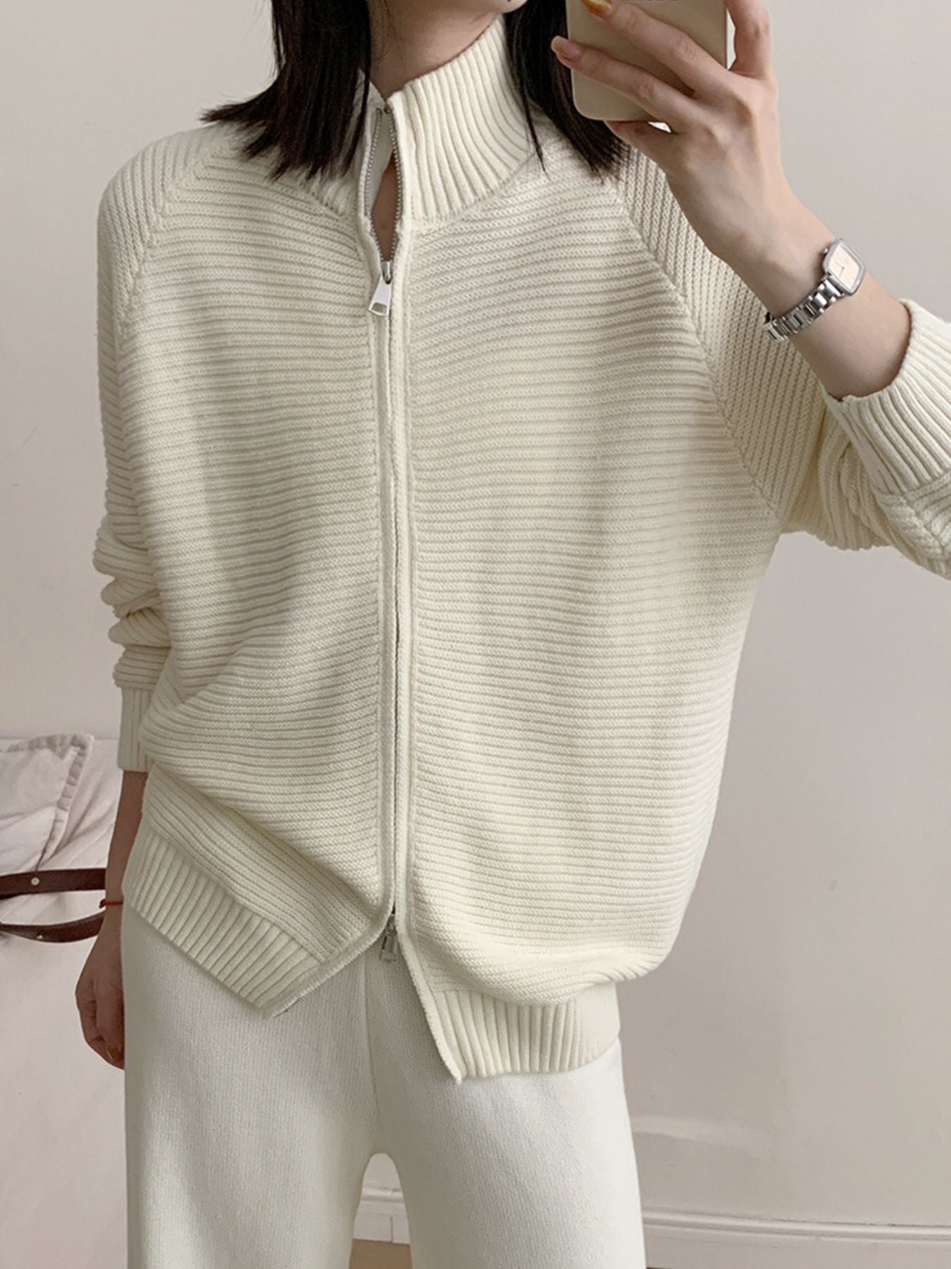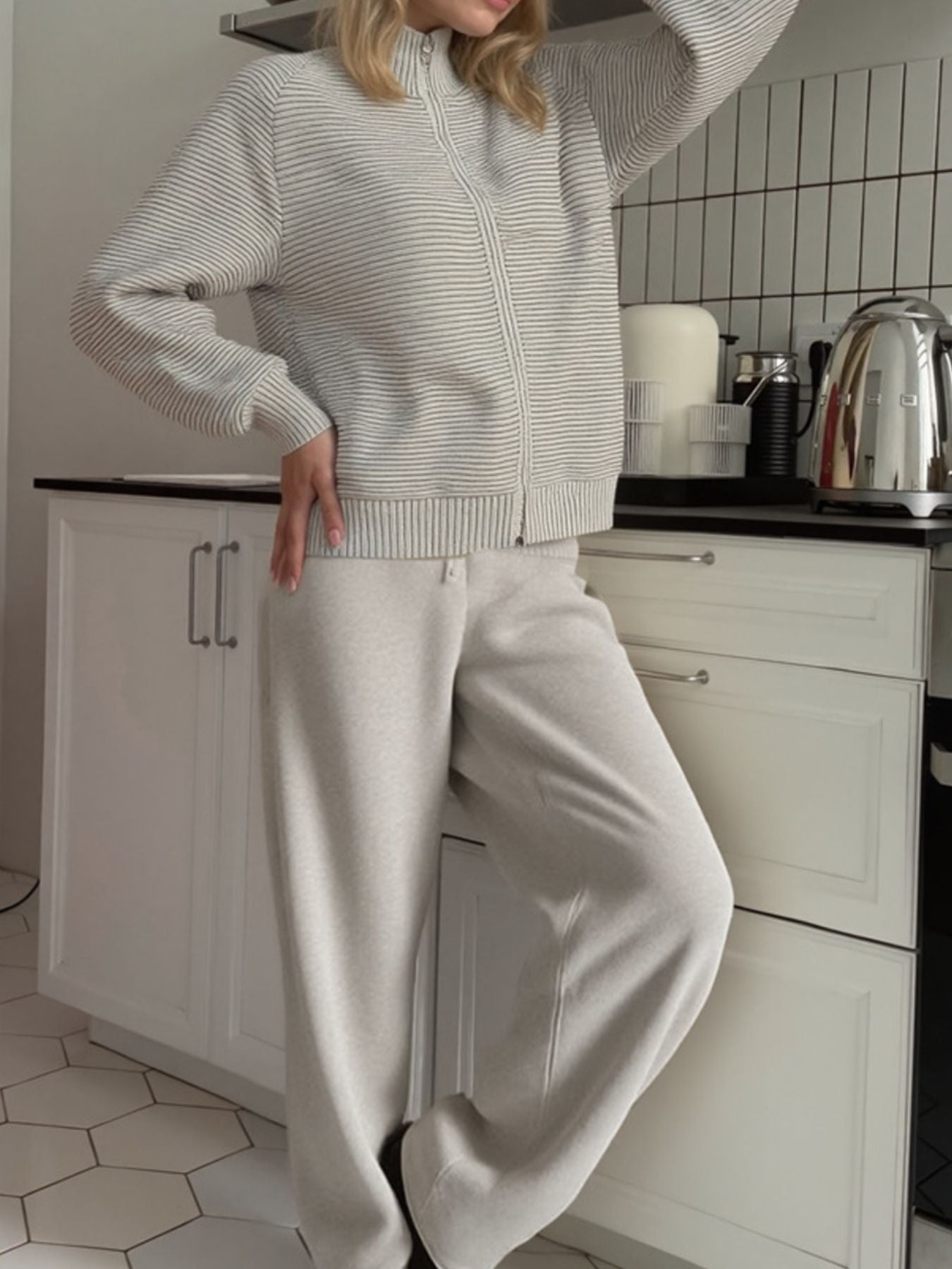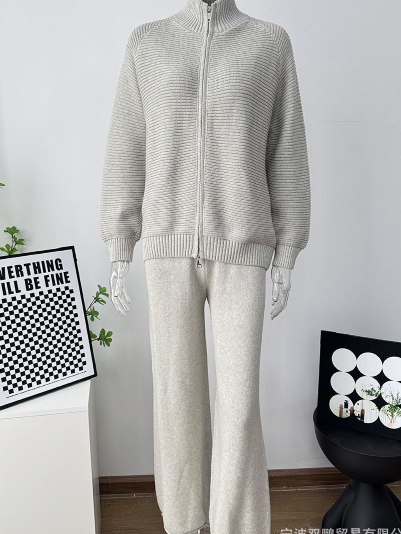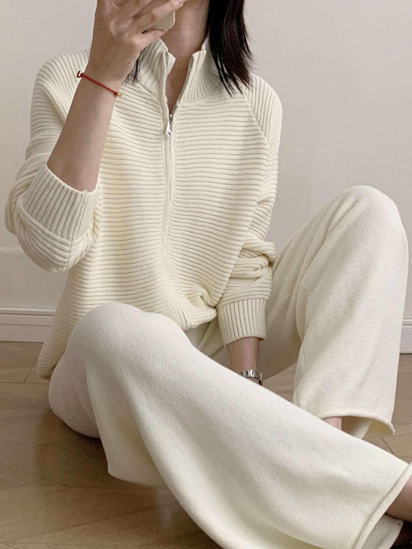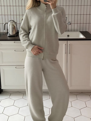 Casual Knit Zip-Up Cardigan and Wide-Leg Pants Set