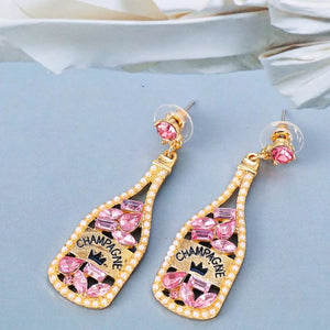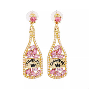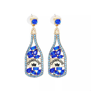 Champagne Bottle Dangle Earrings with Colorful Rhinestones