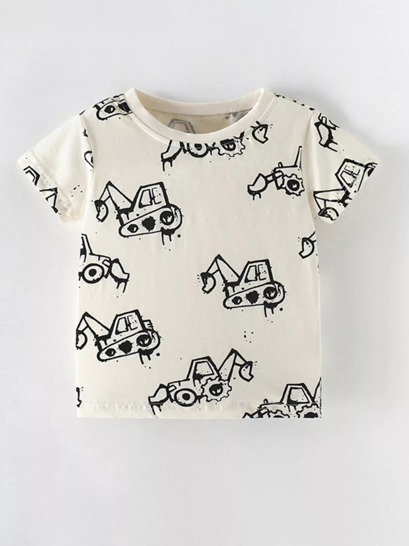 Children's Cartoon Excavator Print Short Sleeve T-Shirt