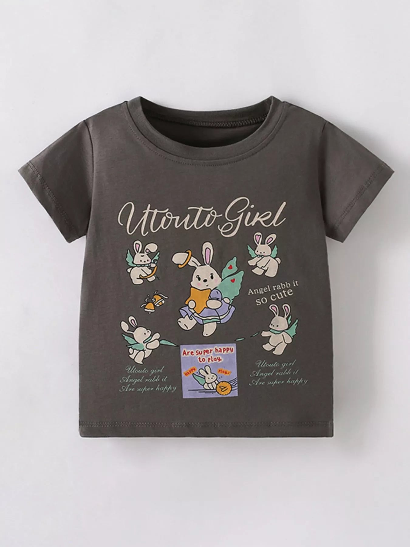 Children's Cartoon Rabbit Print Short Sleeve T-Shirt