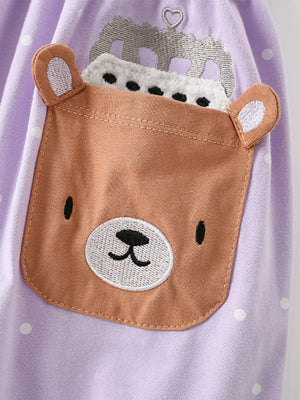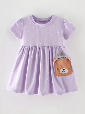 Children's Cute Bear Applique Polka Dot Dress