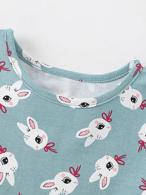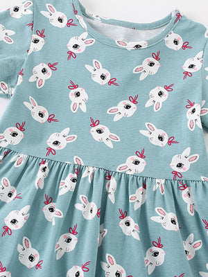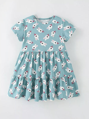 Children's Cute Bunny Print Tiered Ruffle Dress
