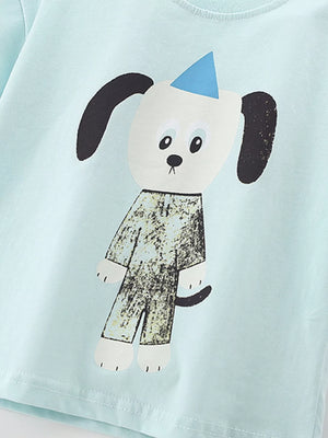 Children's Cute Cartoon Dog Graphic Short Sleeve T-Shirt