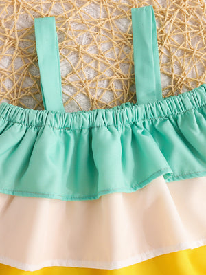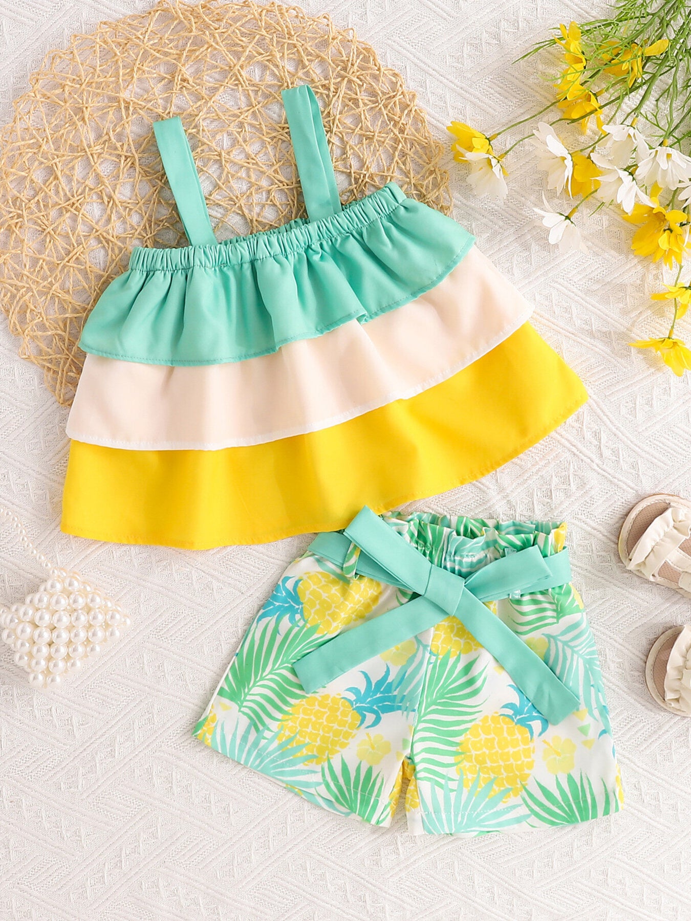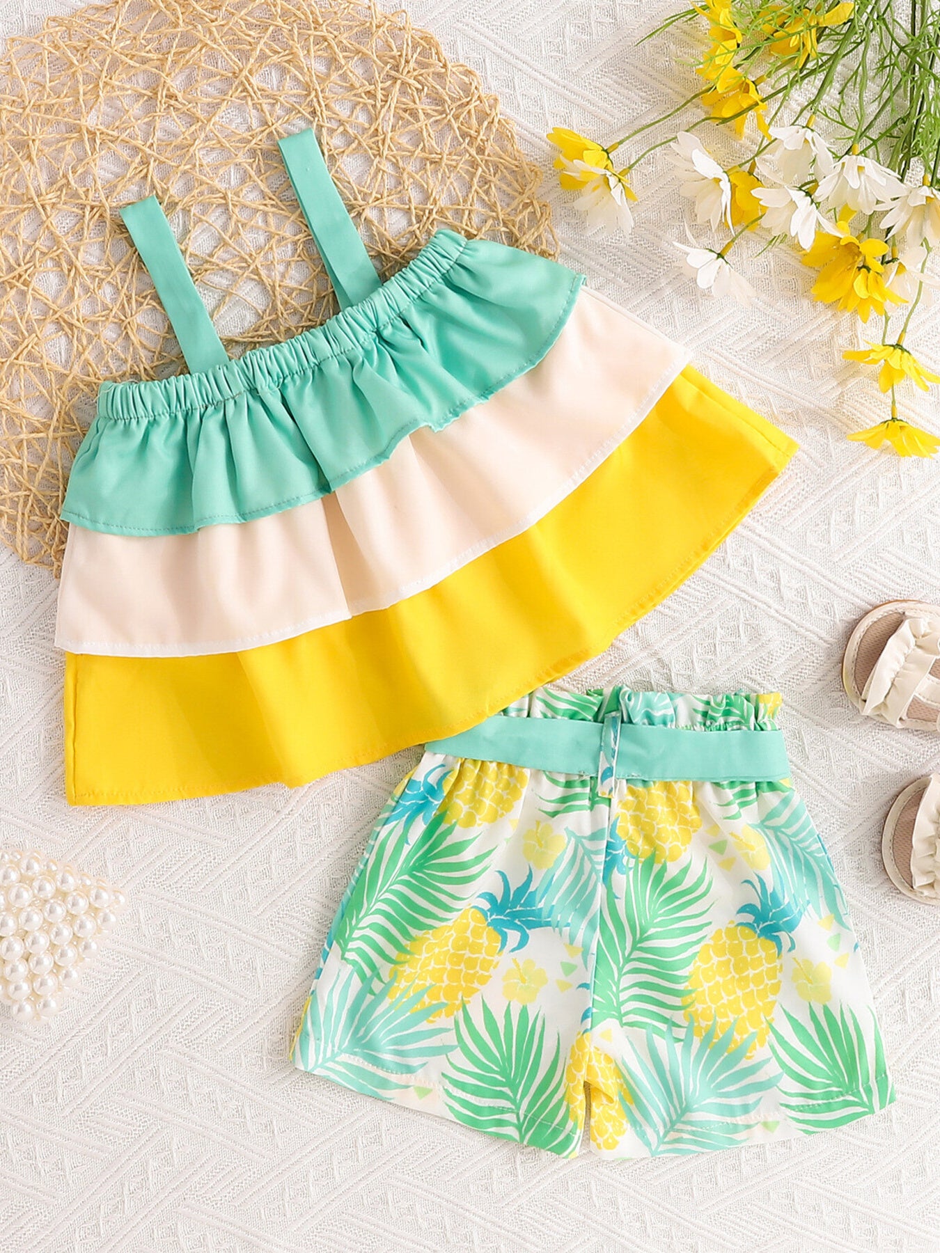 Children's Ruffle Trim Layered Cami Top & Pineapple Print Shorts Set