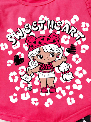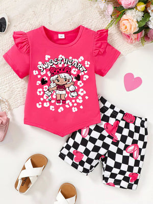 Children's Ruffled Short Sleeve Tee and Checkerboard Shorts Set