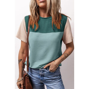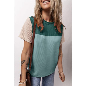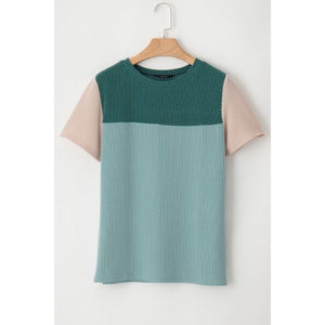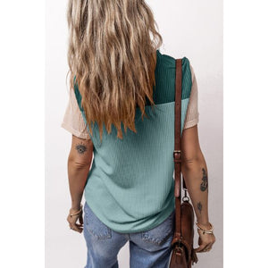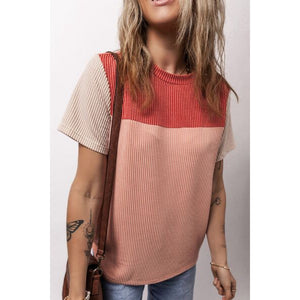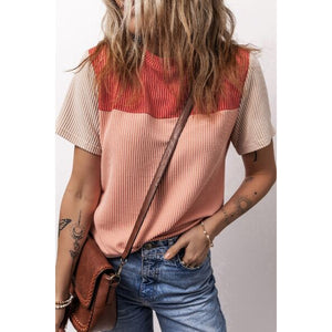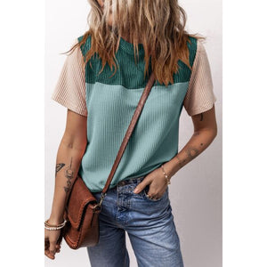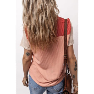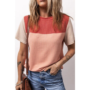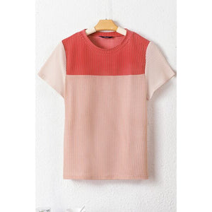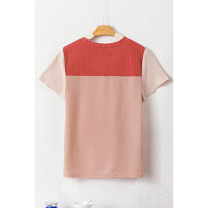 Color Block Round Neck Short Sleeve T-Shirt