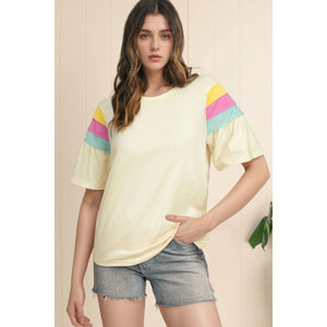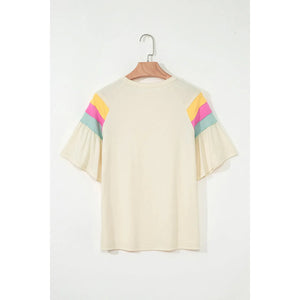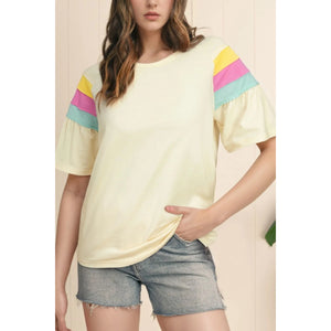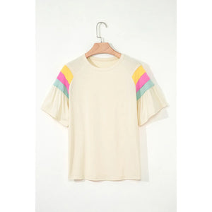 Color Block Stitched Sleeve Loose T Shirt