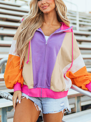 Color Block Zip-Up Hoodie