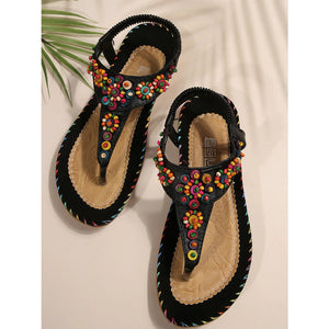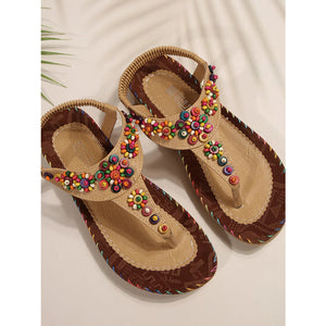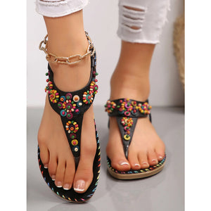 Colorful Beaded T-Strap Flat Sandals