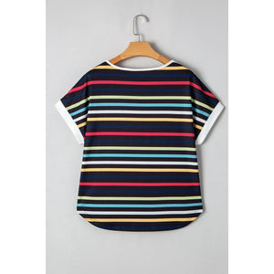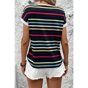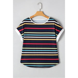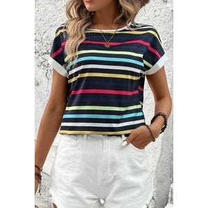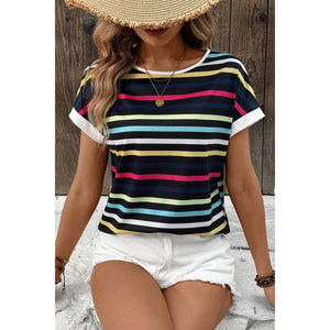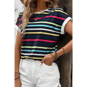 Colorful Striped Short Sleeve Casual T-Shirt