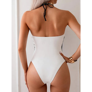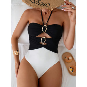 Contrast Cutout Halter Neck One-Piece Swimwear