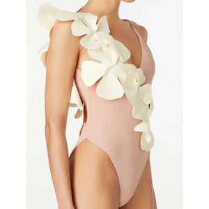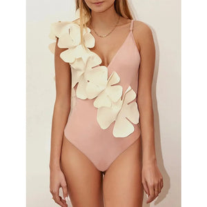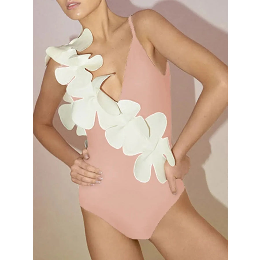 Contrast Flower Spaghetti Strap One-Piece Swimwear