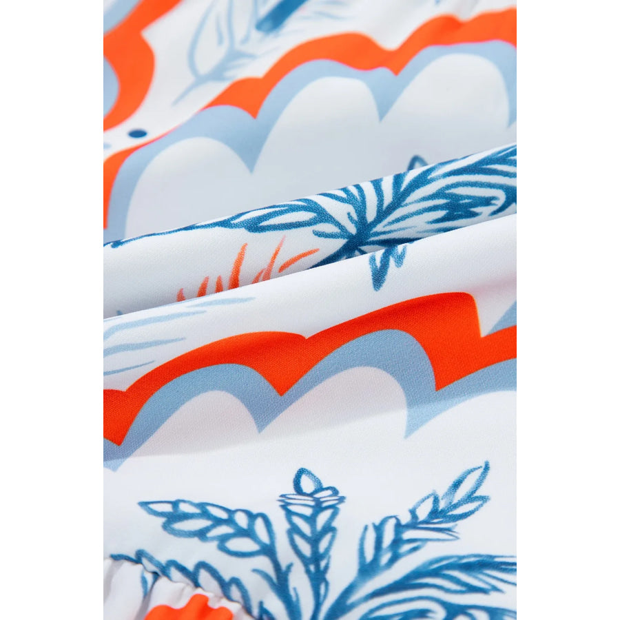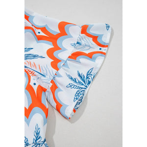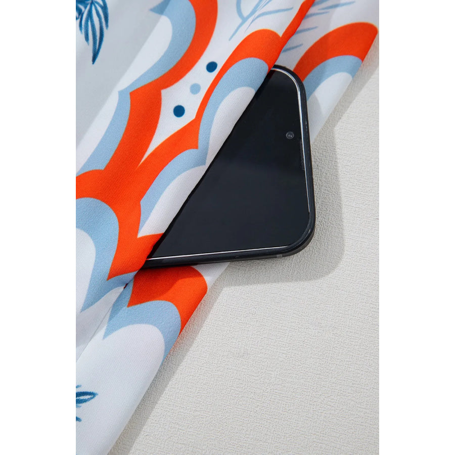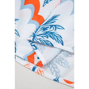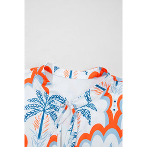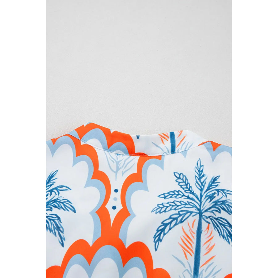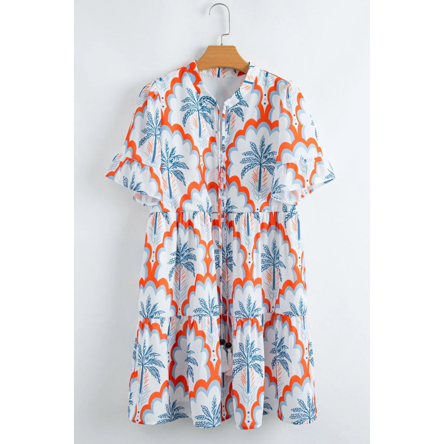 Contrast Palm Tree Printed Short Sleeve Flowy Dress