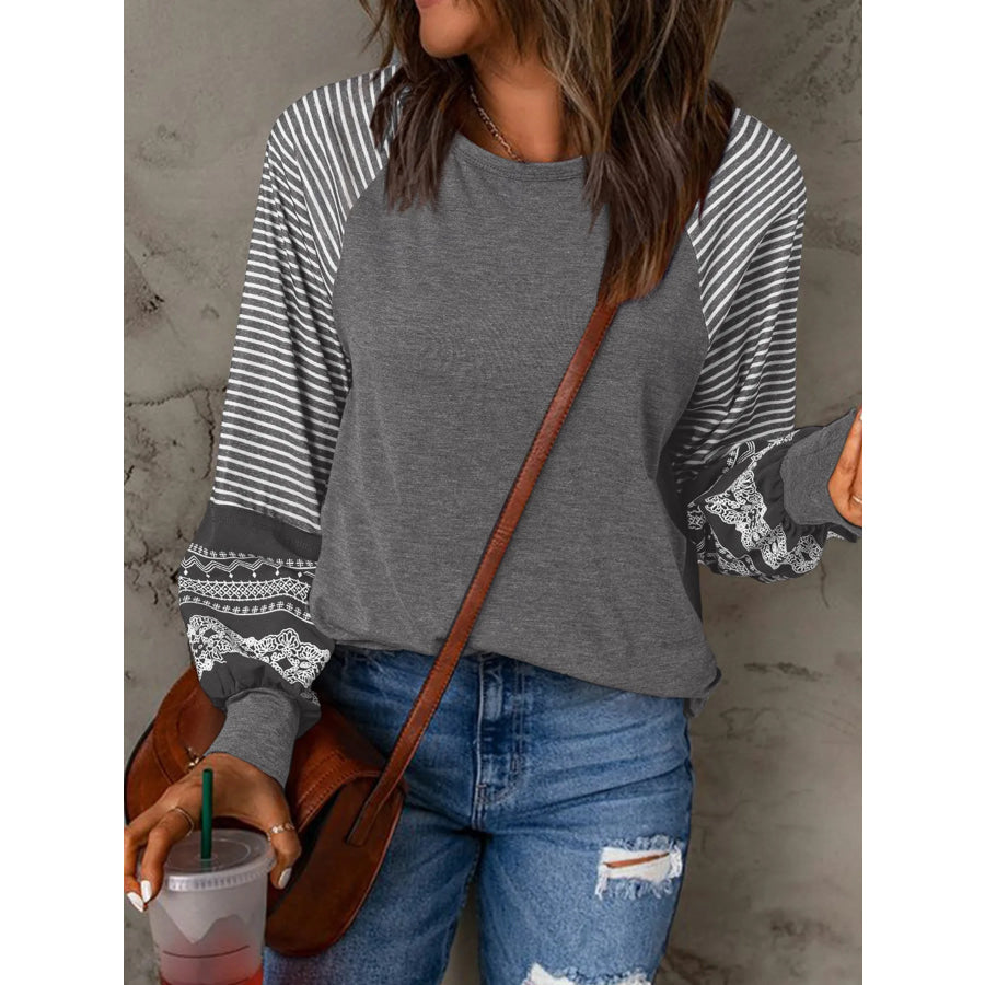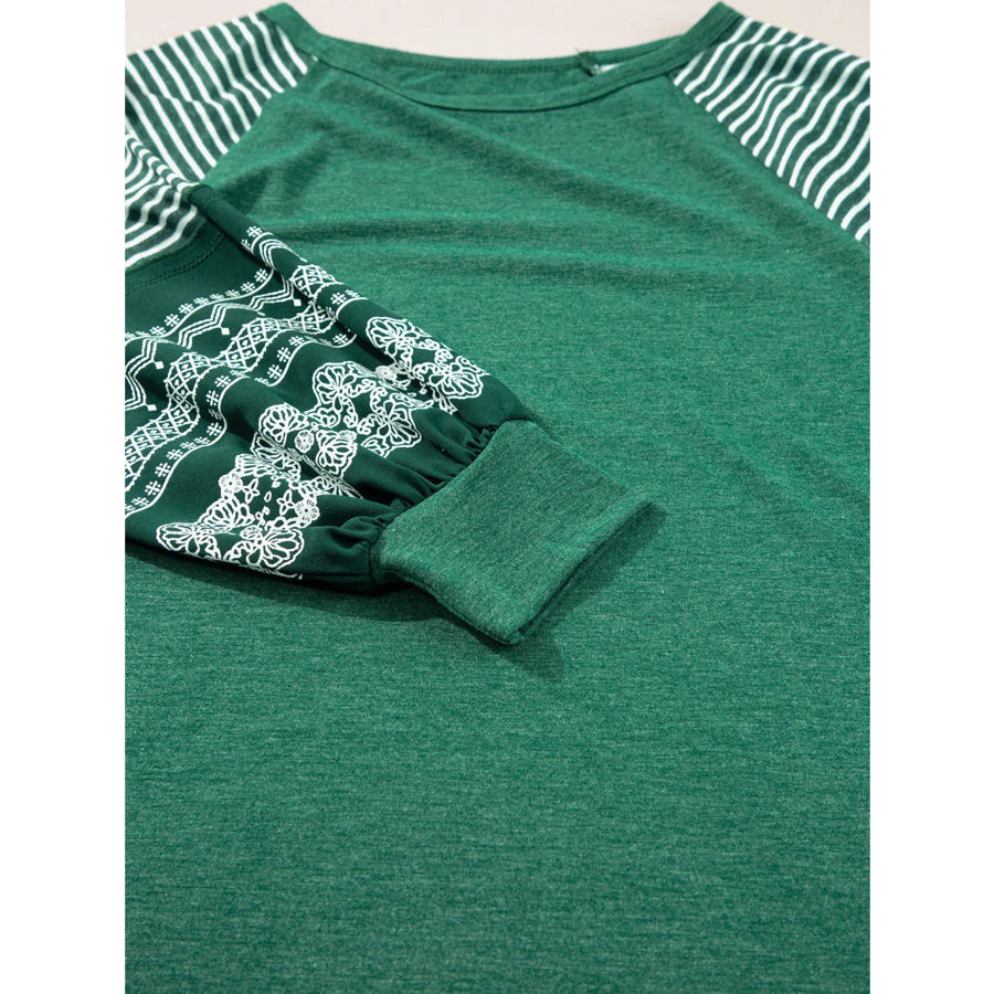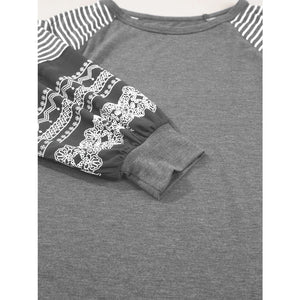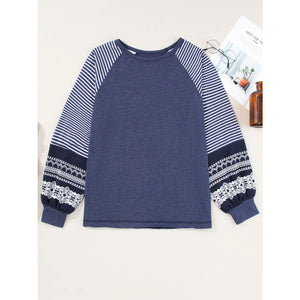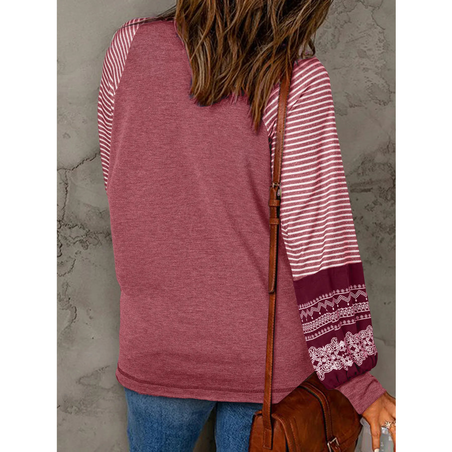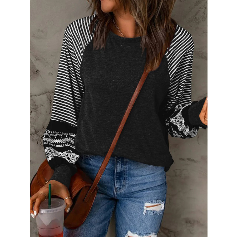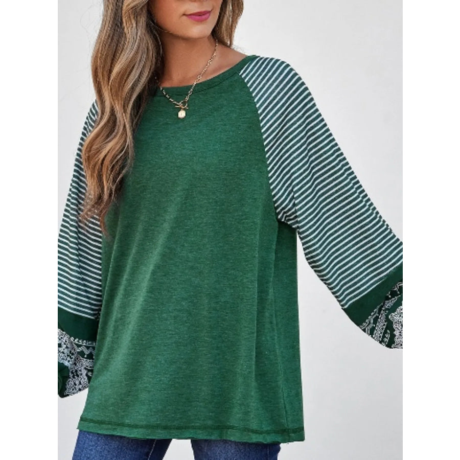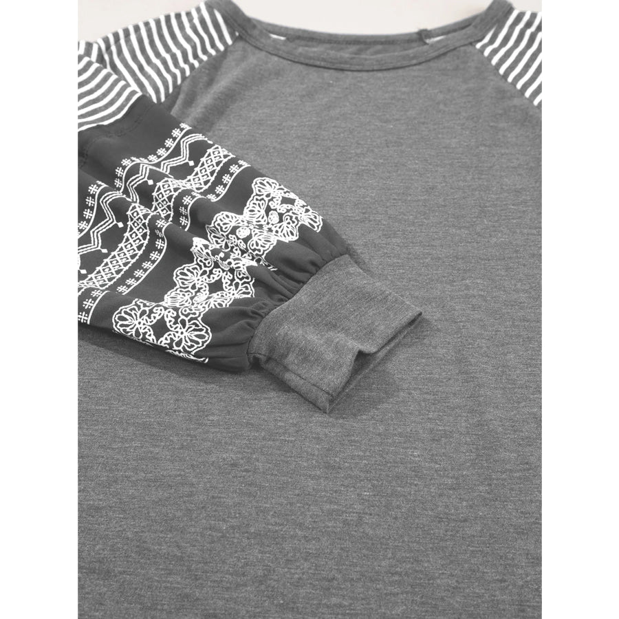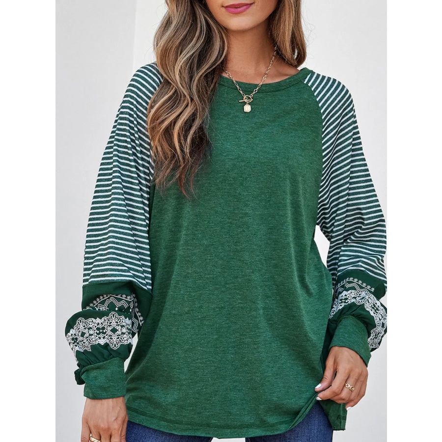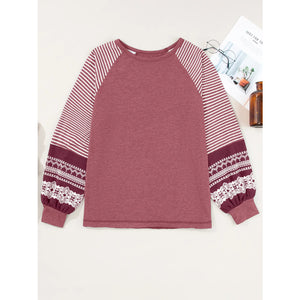 Contrast Print Striped Raglan Long Sleeve Loose Top