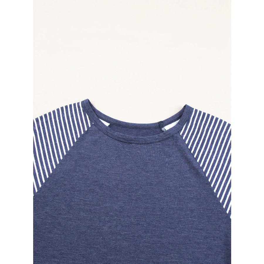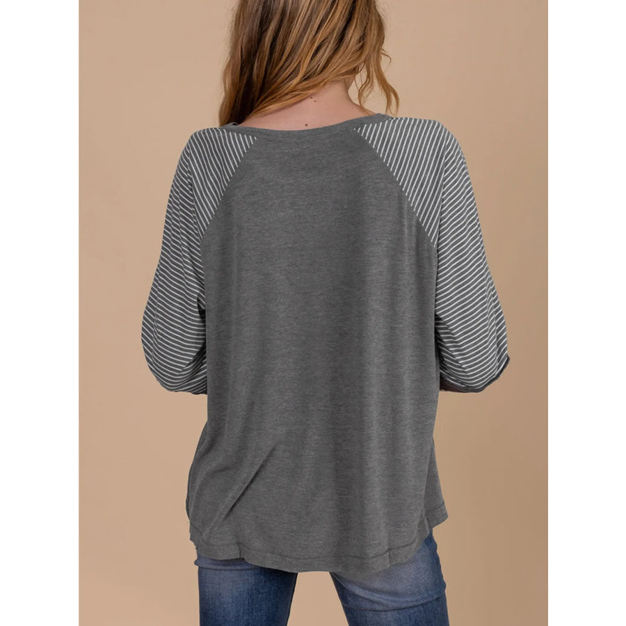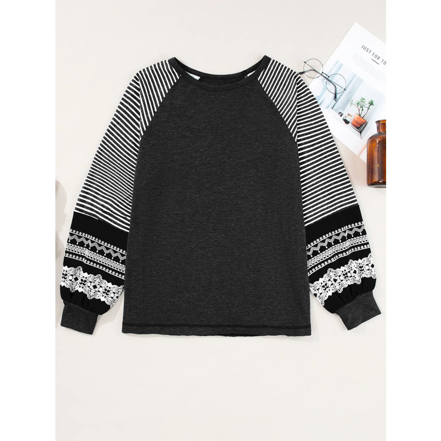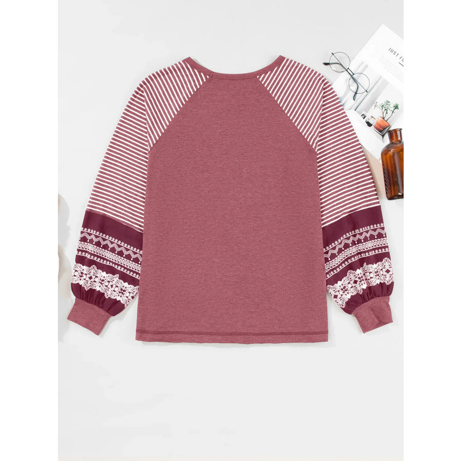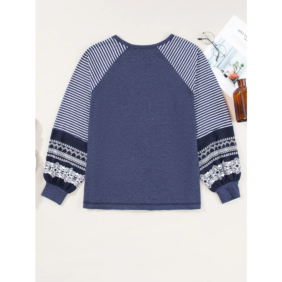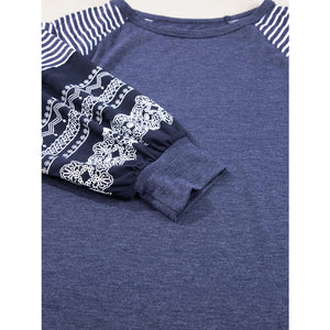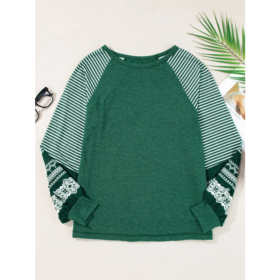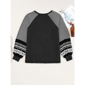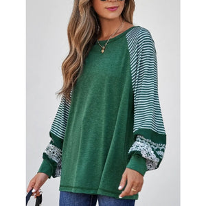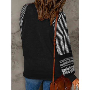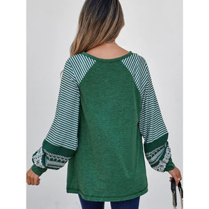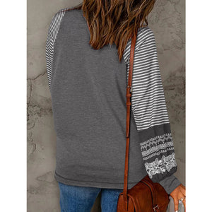 Contrast Print Striped Raglan Long Sleeve Loose Top