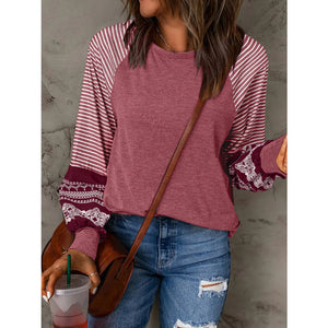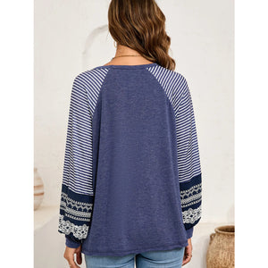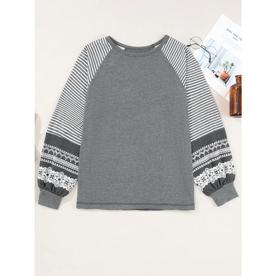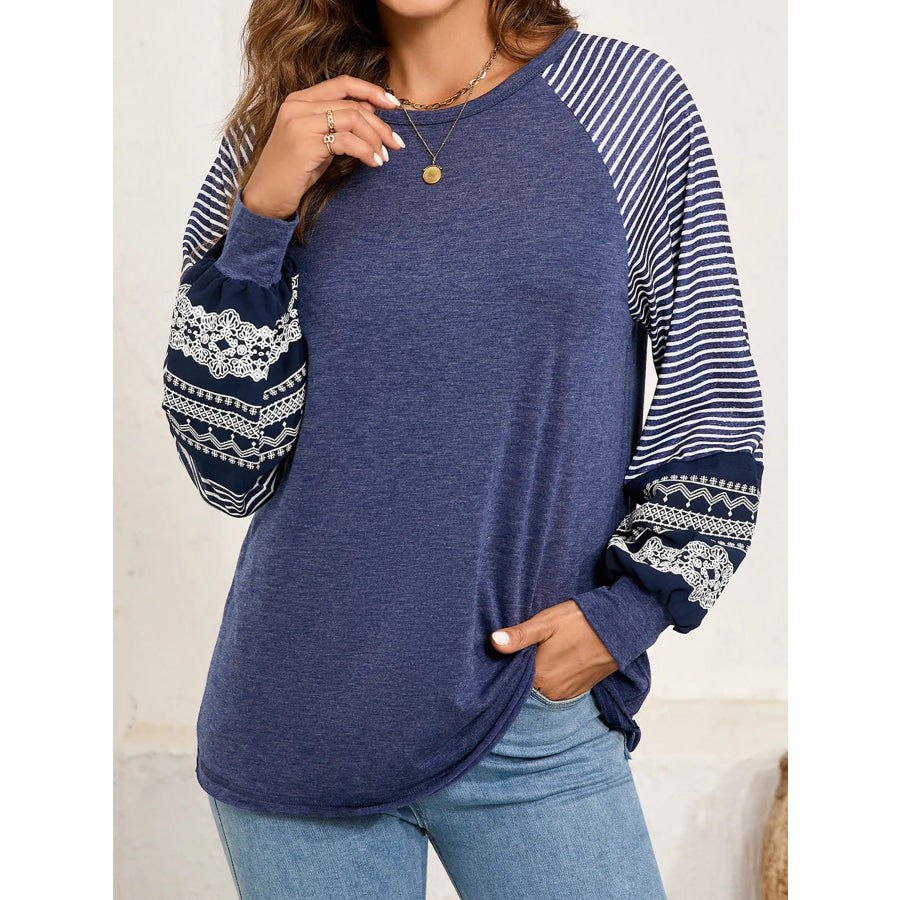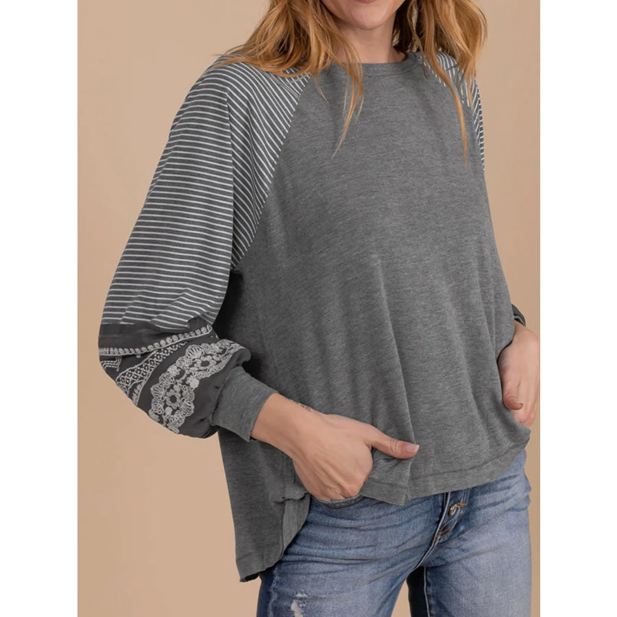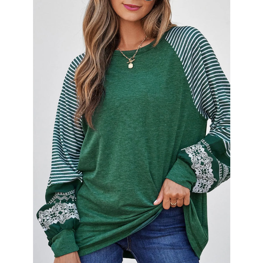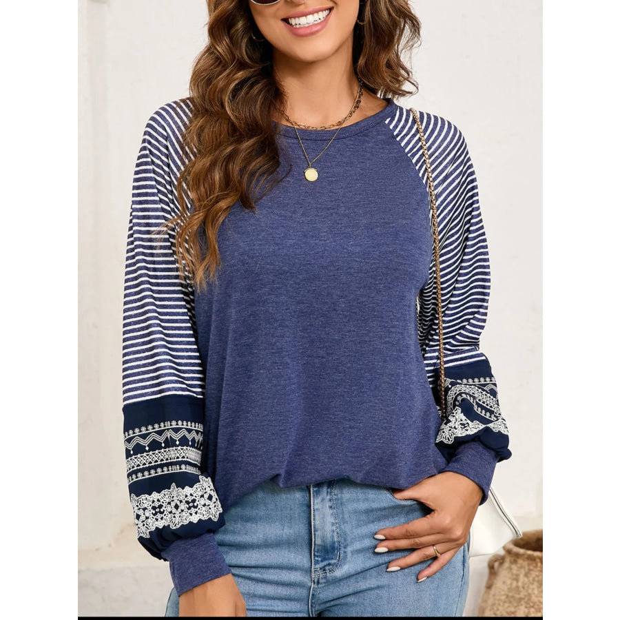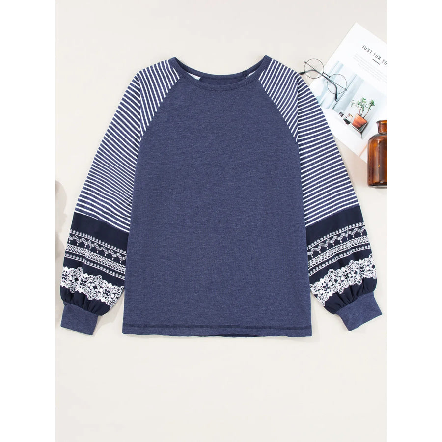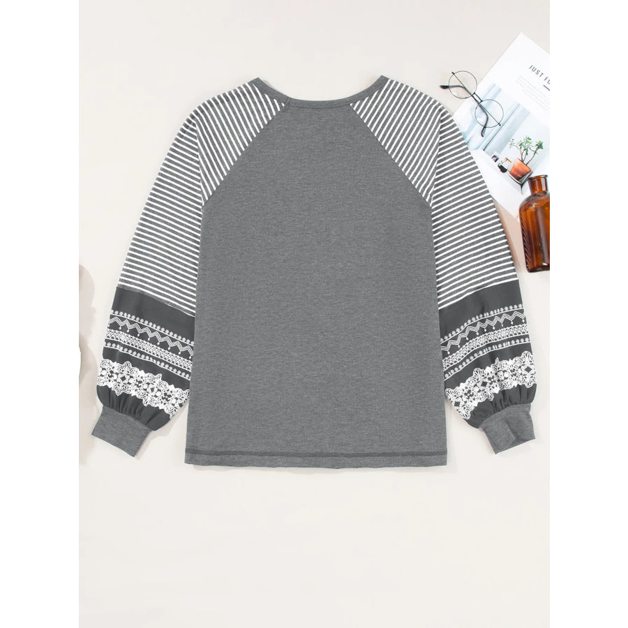 Contrast Print Striped Raglan Long Sleeve Loose Top