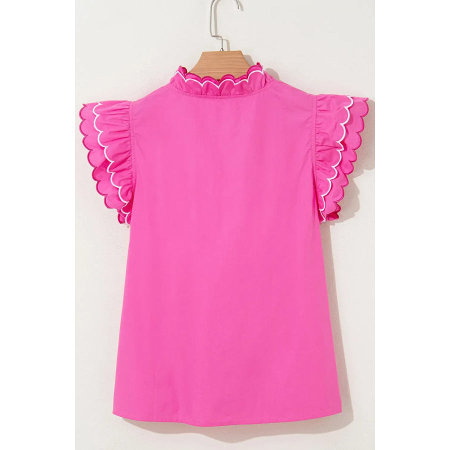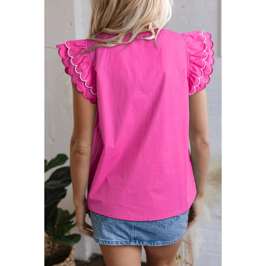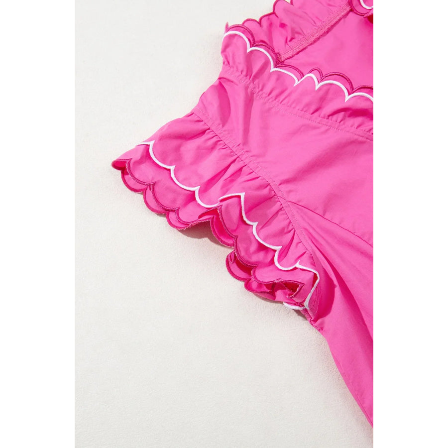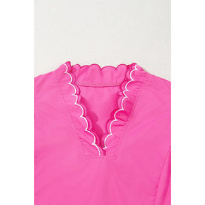 Contrast Scallop Trim Layered Short Sleeve V Neck Blouse
