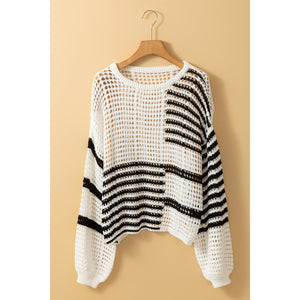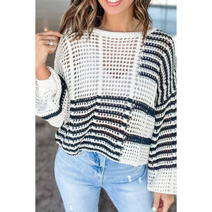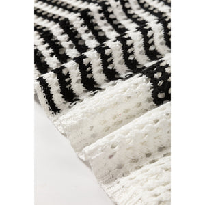 Contrast Striped Crochet Long Sleeve Knit Cover Up
