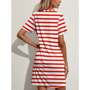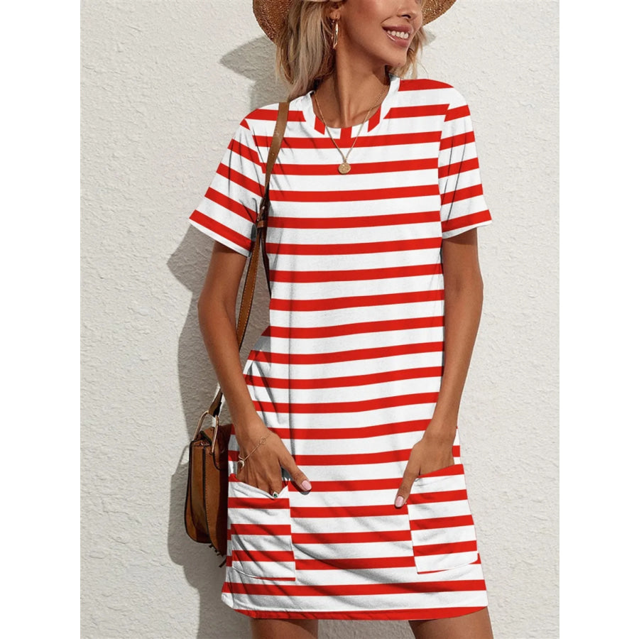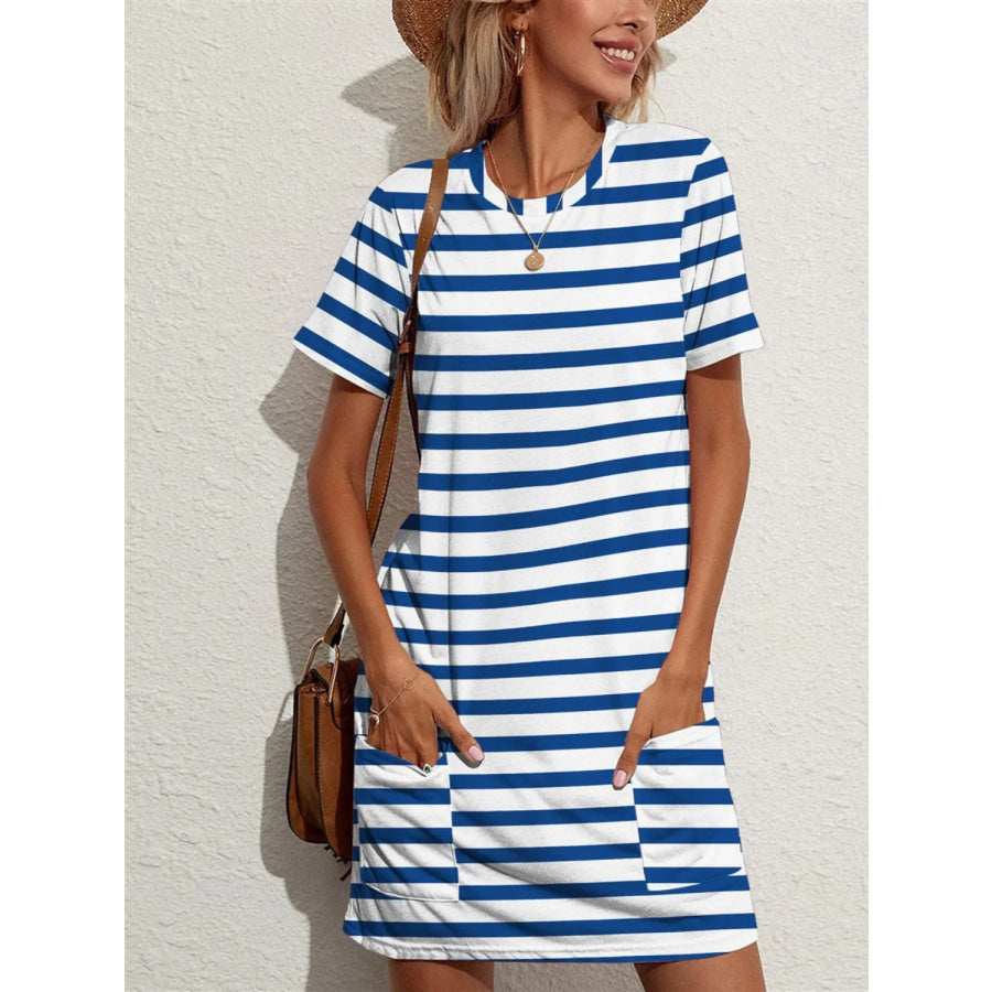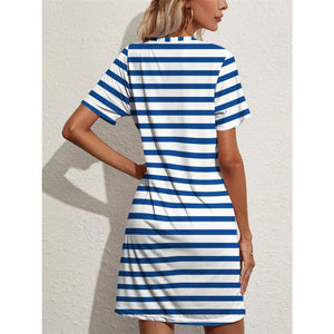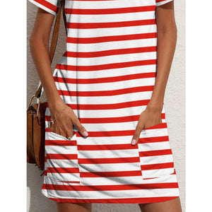 Contrast Striped Round Neck Short Sleeve Dress