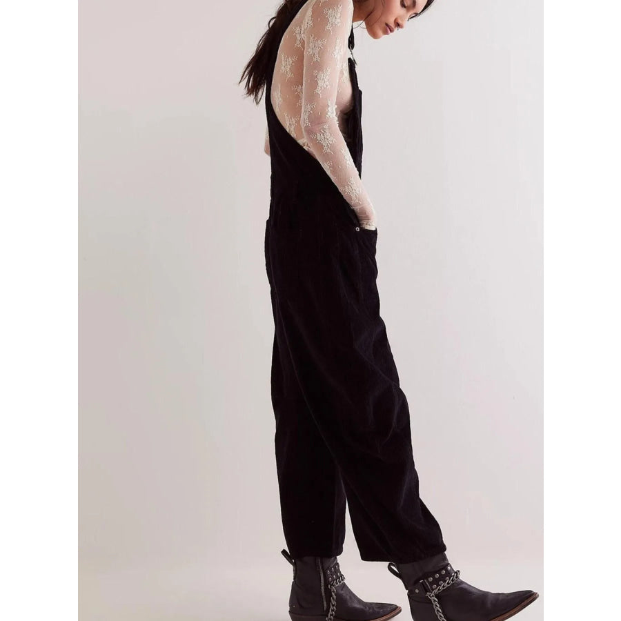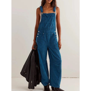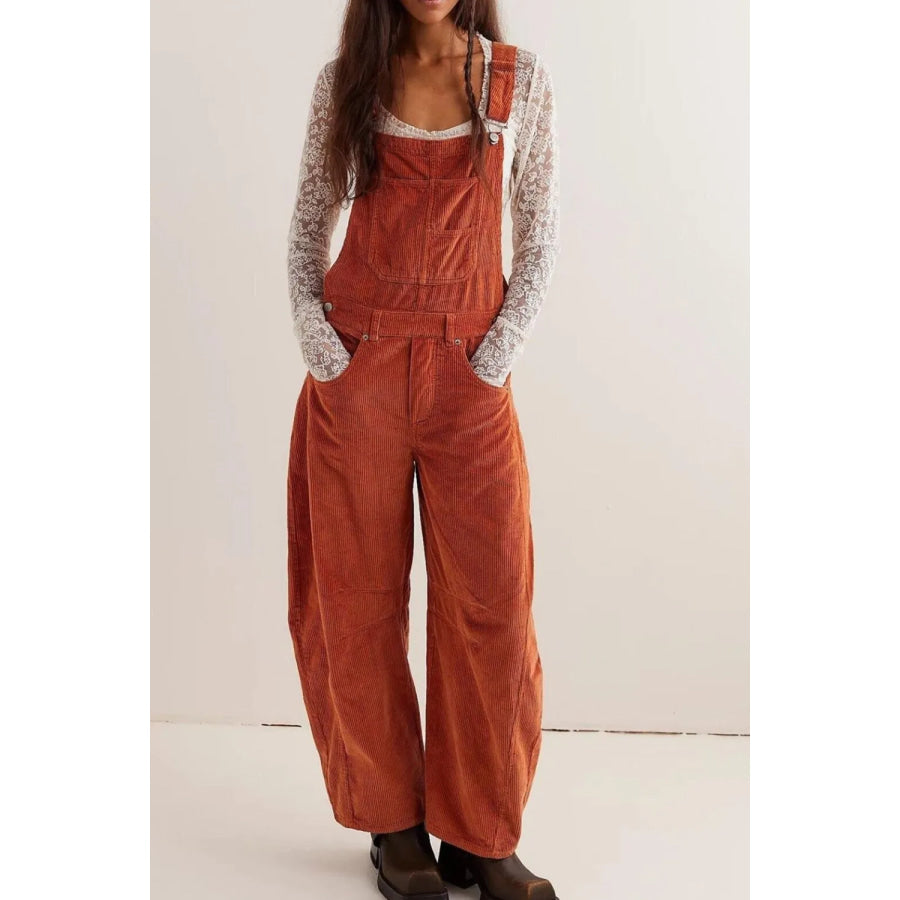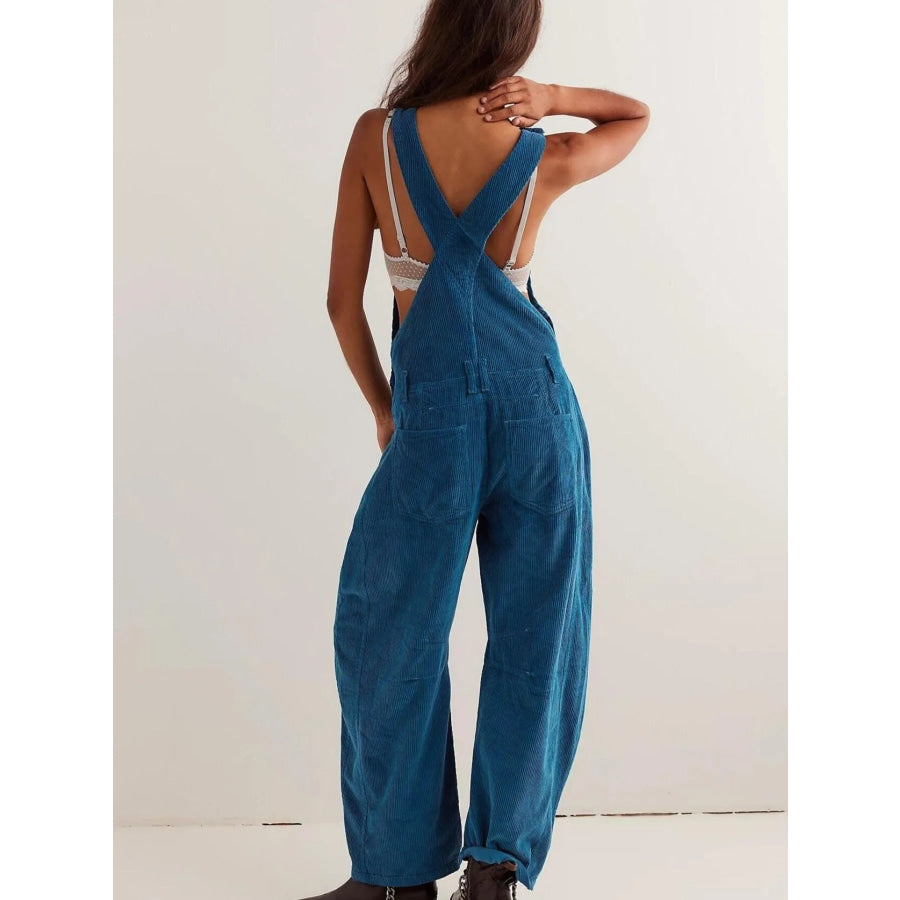 Corduroy Wide-Leg Overall with Adjustable Straps
