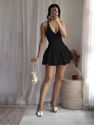 Crisscross Layered Ruffle Hem Mini Dress