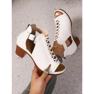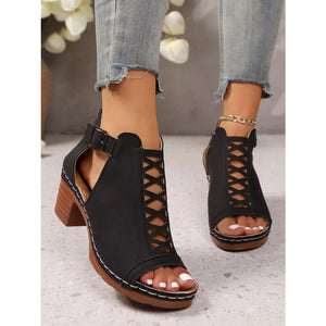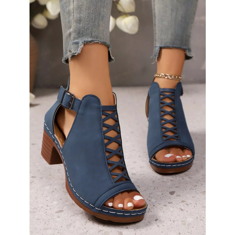 Crisscross Peep Toe Block Heels Sandals