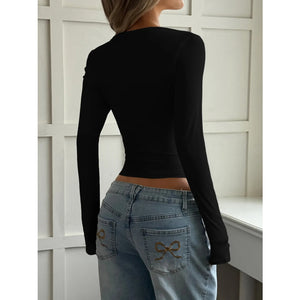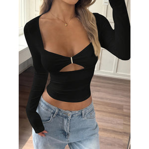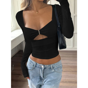 Cut-Out Long Sleeve Crop T-Shirt