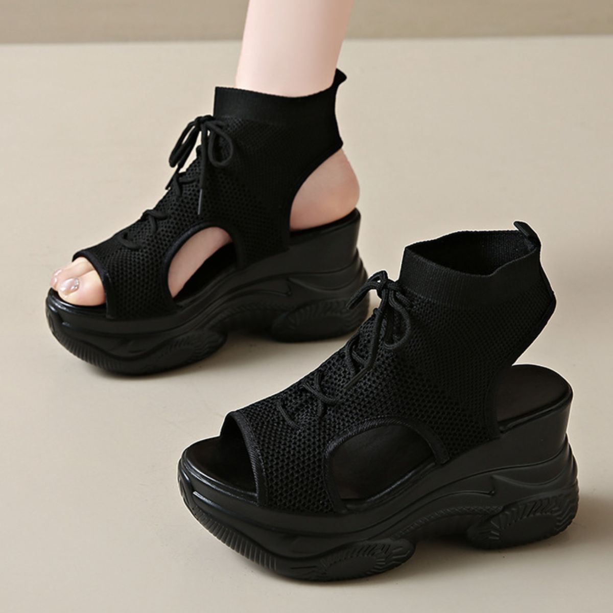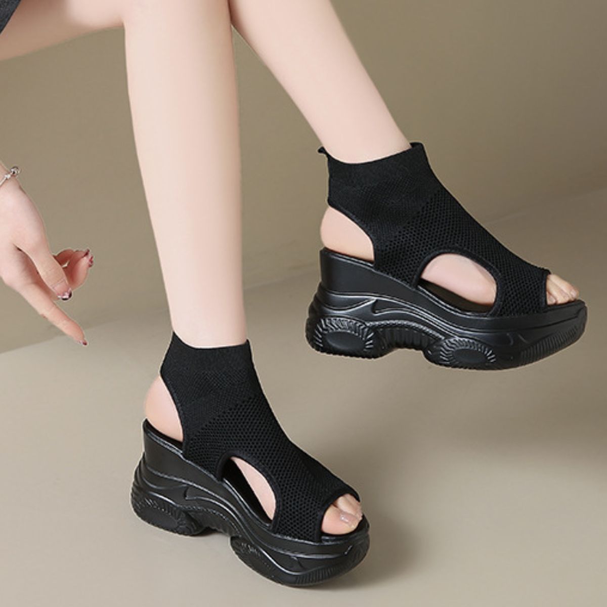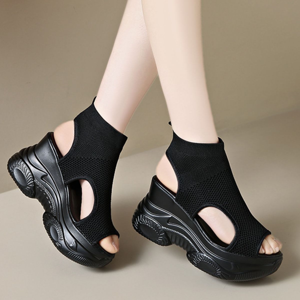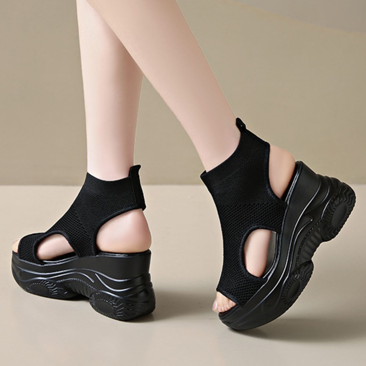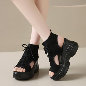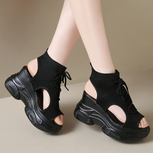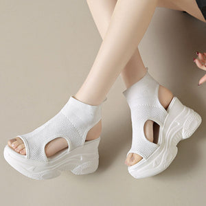 Cutout Mesh Wedge Sandals