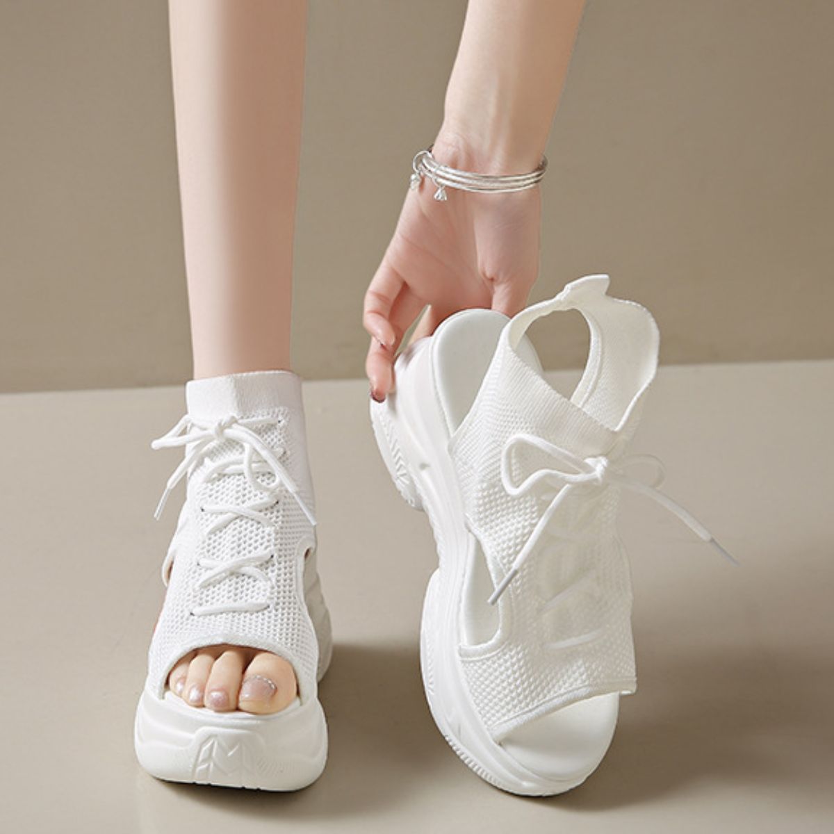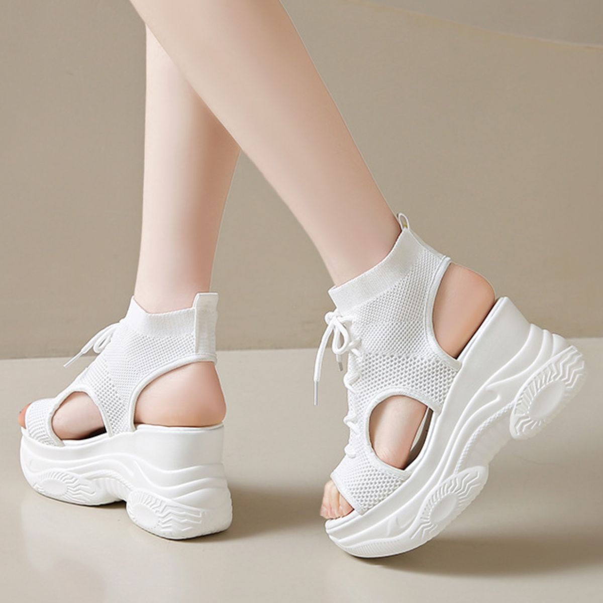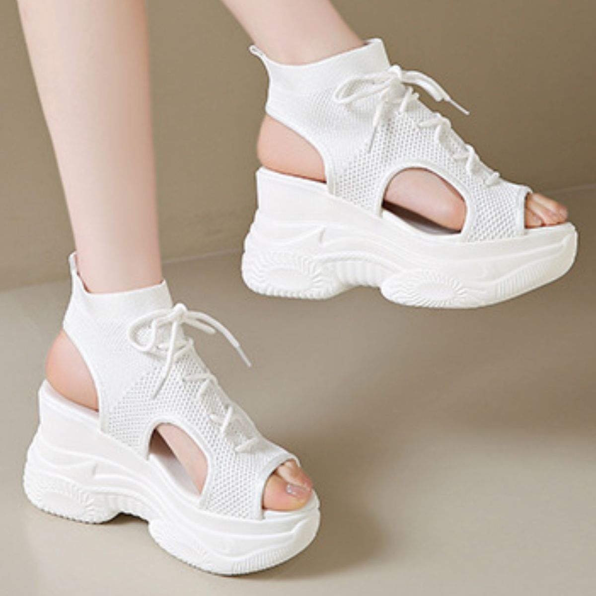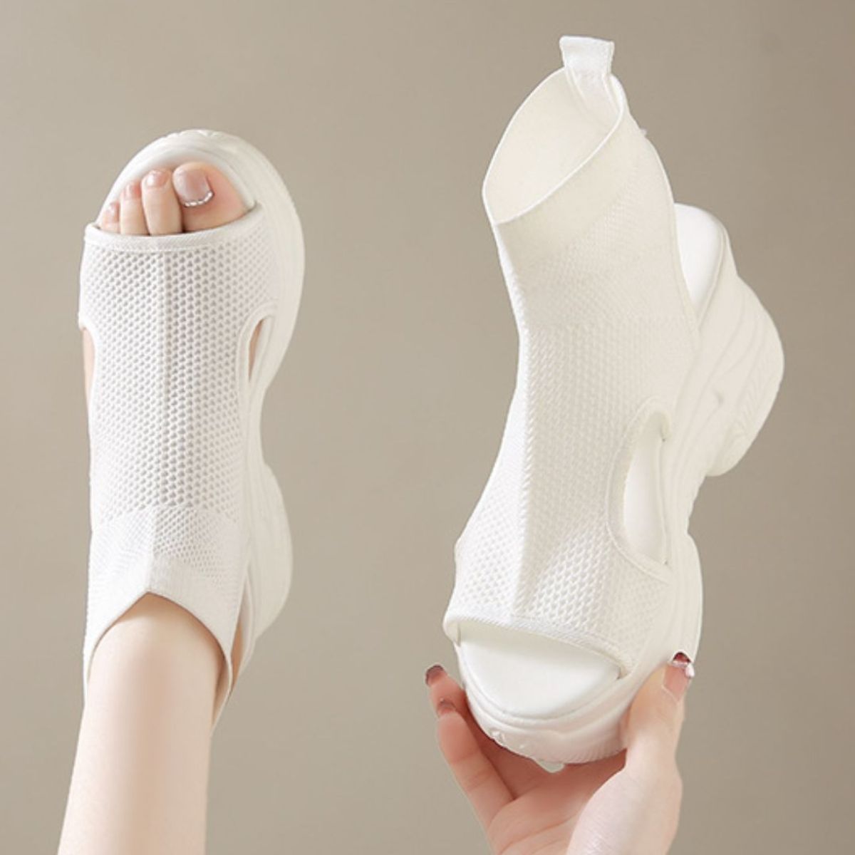 Cutout Mesh Wedge Sandals