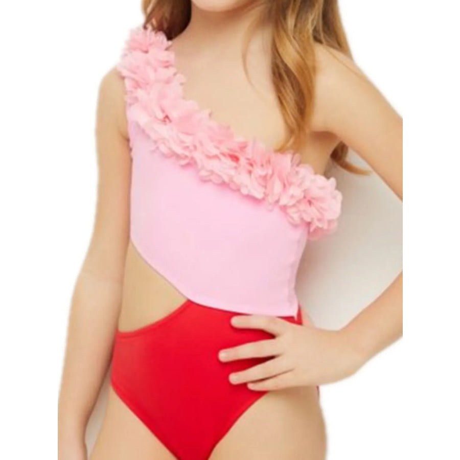 Cutout One Shoulder Contrast Parent-Child Swimwear