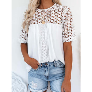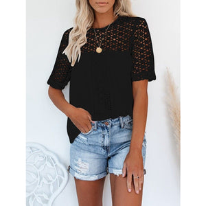Cutout Round Neck Half Sleeve Blouse