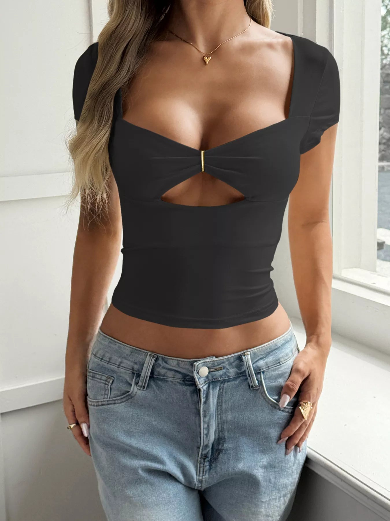 Cutout Slim-Fit Short Sleeve T-Shirt