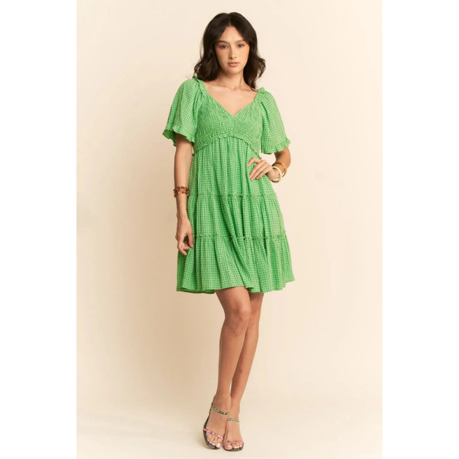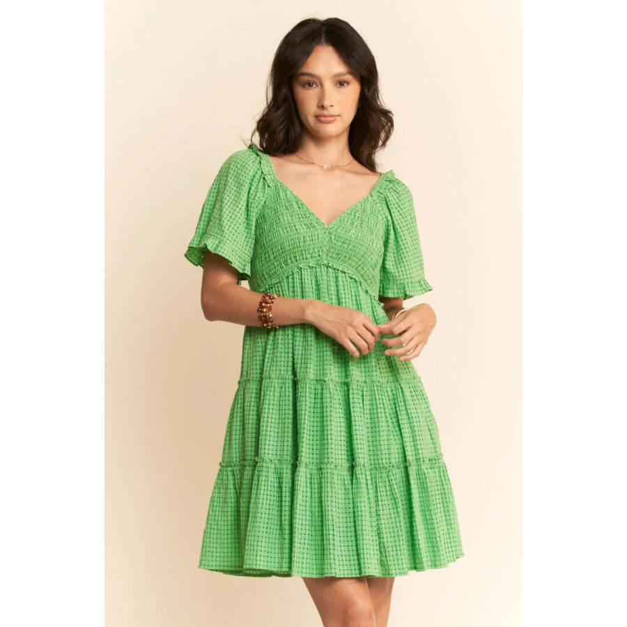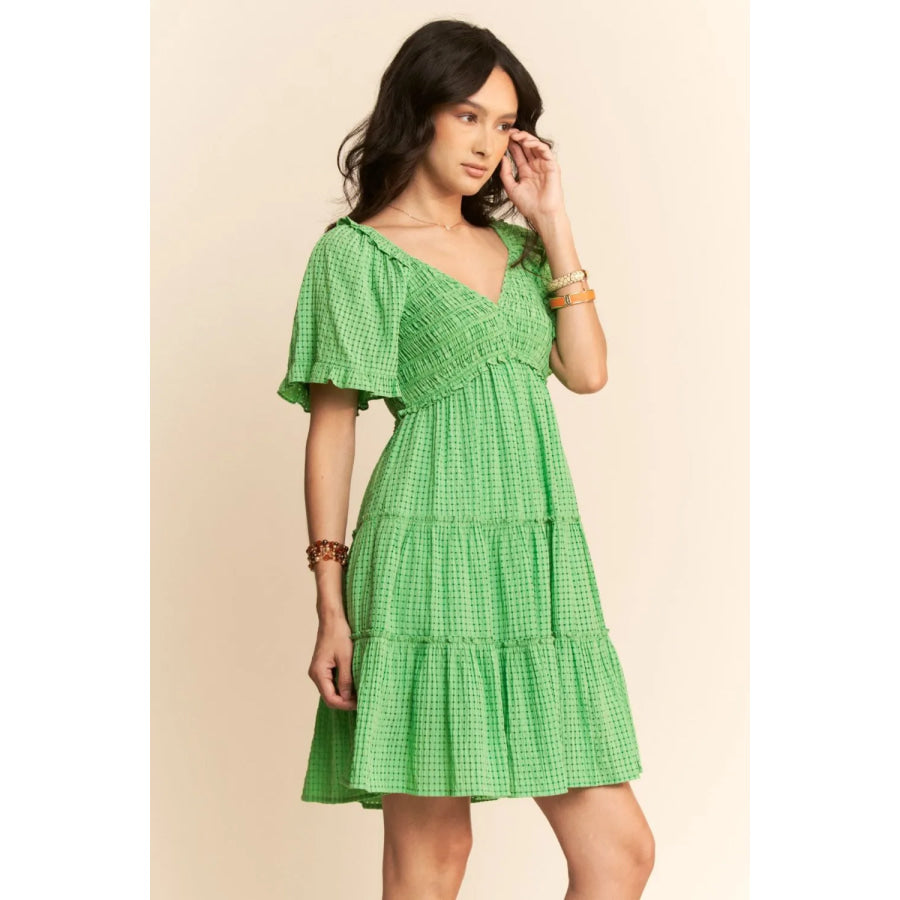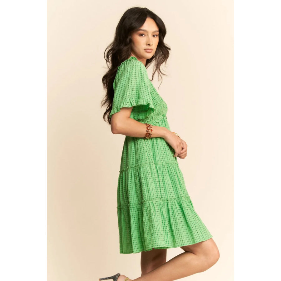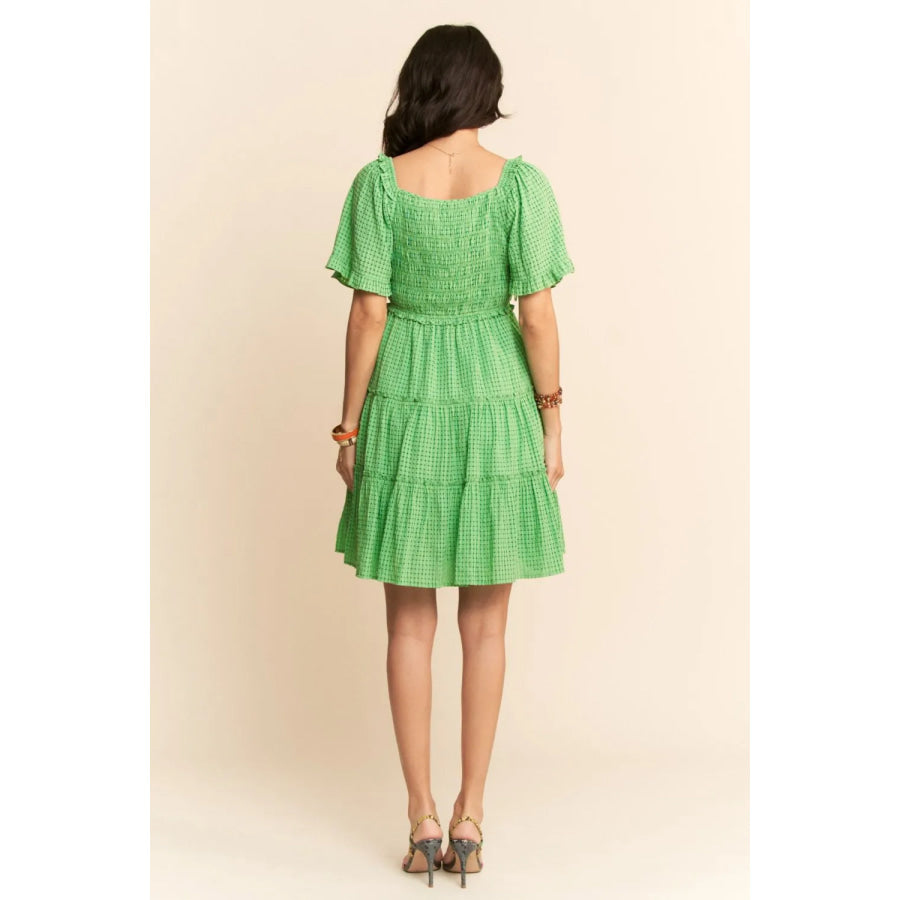 Davi & Dani Jacquard Checker Smocking Tiered Dress