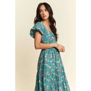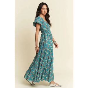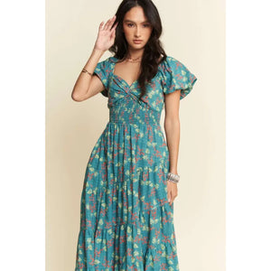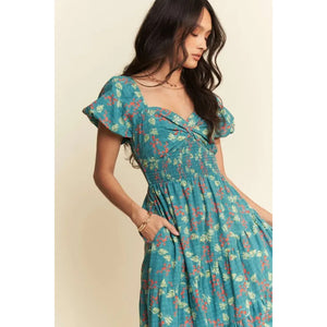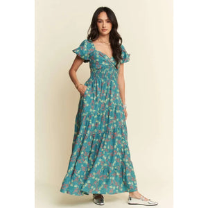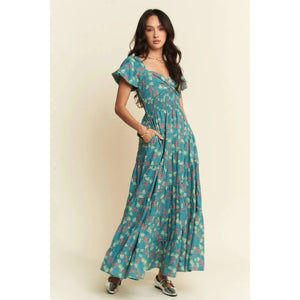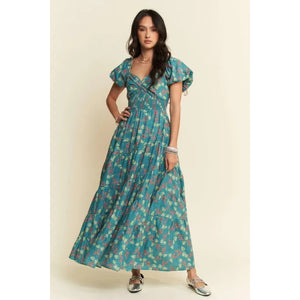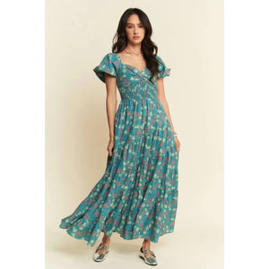 The lightweight sweetheart neck textured tiered maxi dress is a romantic and breezy garment featuring a sweetheart neckline and tiered skirt. The textured fabric adds depth and interest to the dress, while the sweethear neckline offers a flattering look. With its maxi length, this dress provides an elegant and flowing silhouette, making it a beautiful choice for special occasions or summer events.