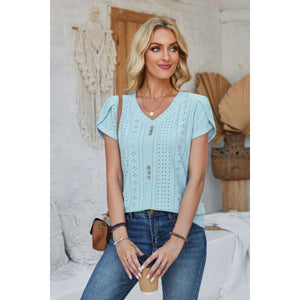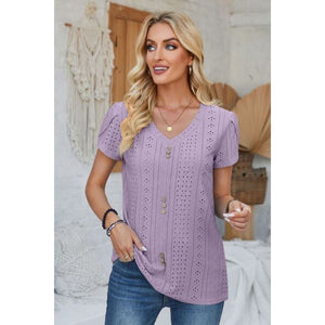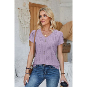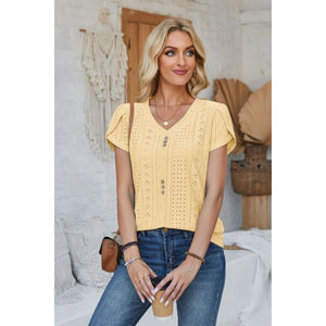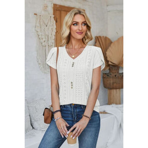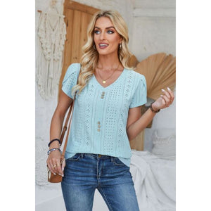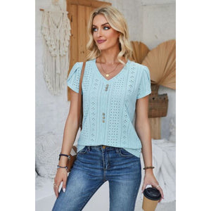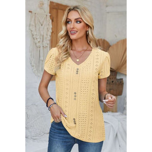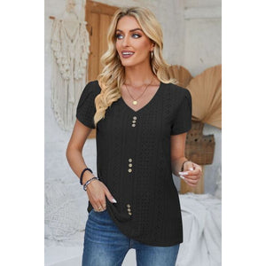Decorative Button Eyelet V-Neck Short Sleeve T-Shirt