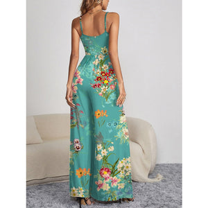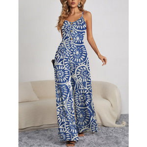 Decorative Button Spaghetti Strap Wide Leg Jumpsuit