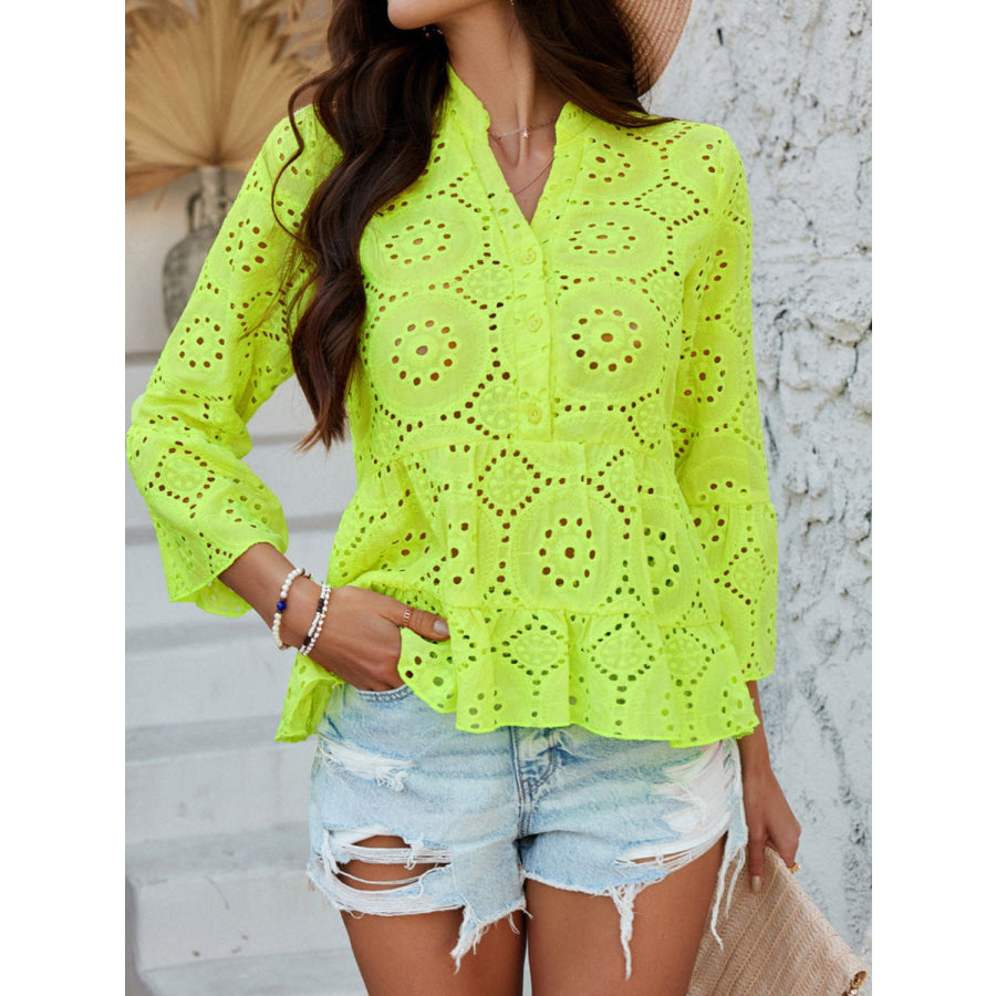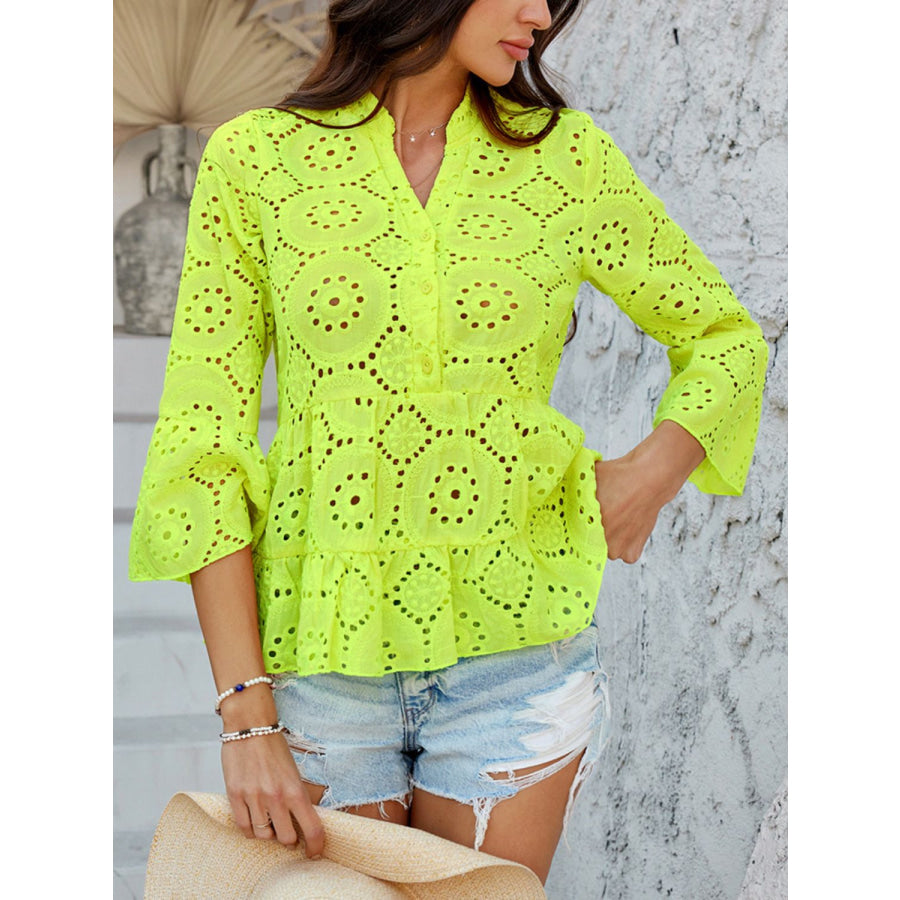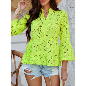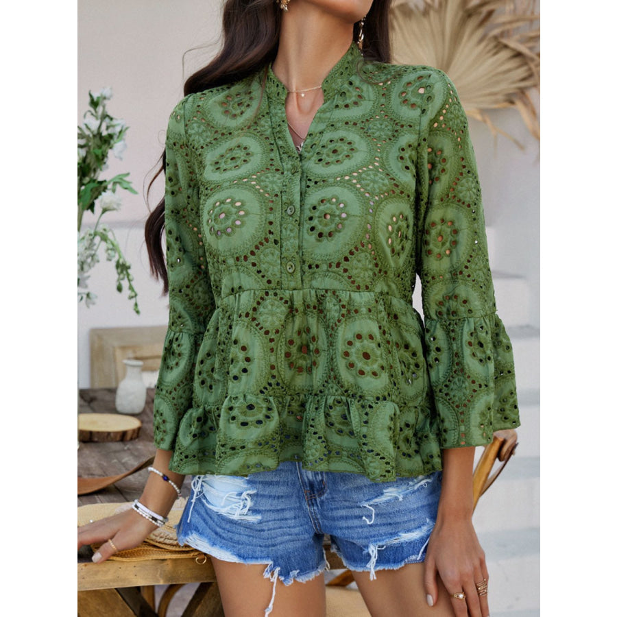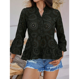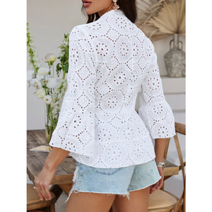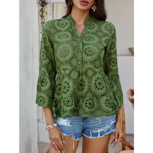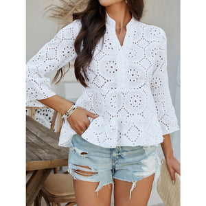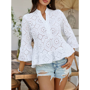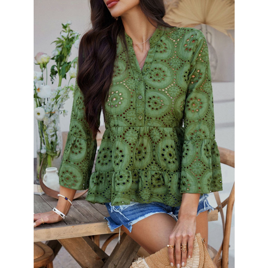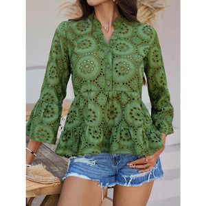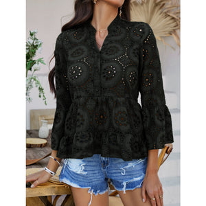 Devine Half Button Flounce Sleeve Peplum Blouse