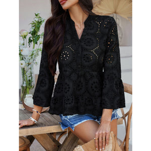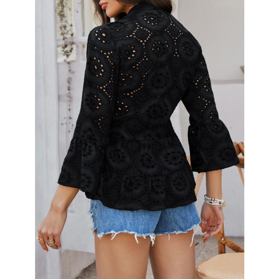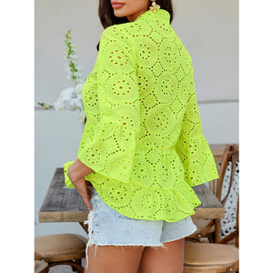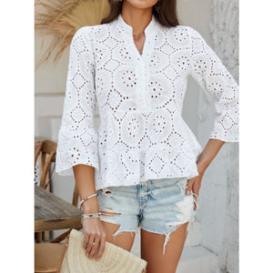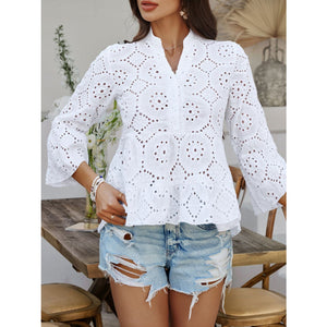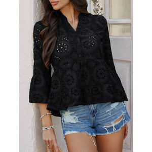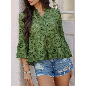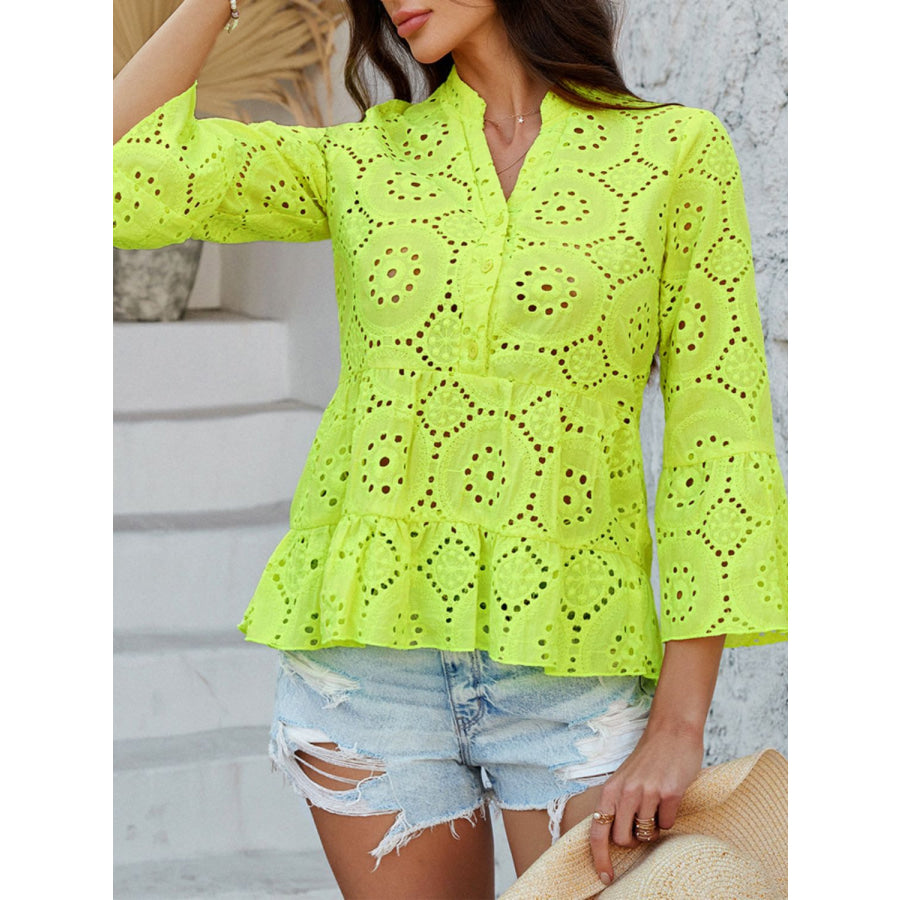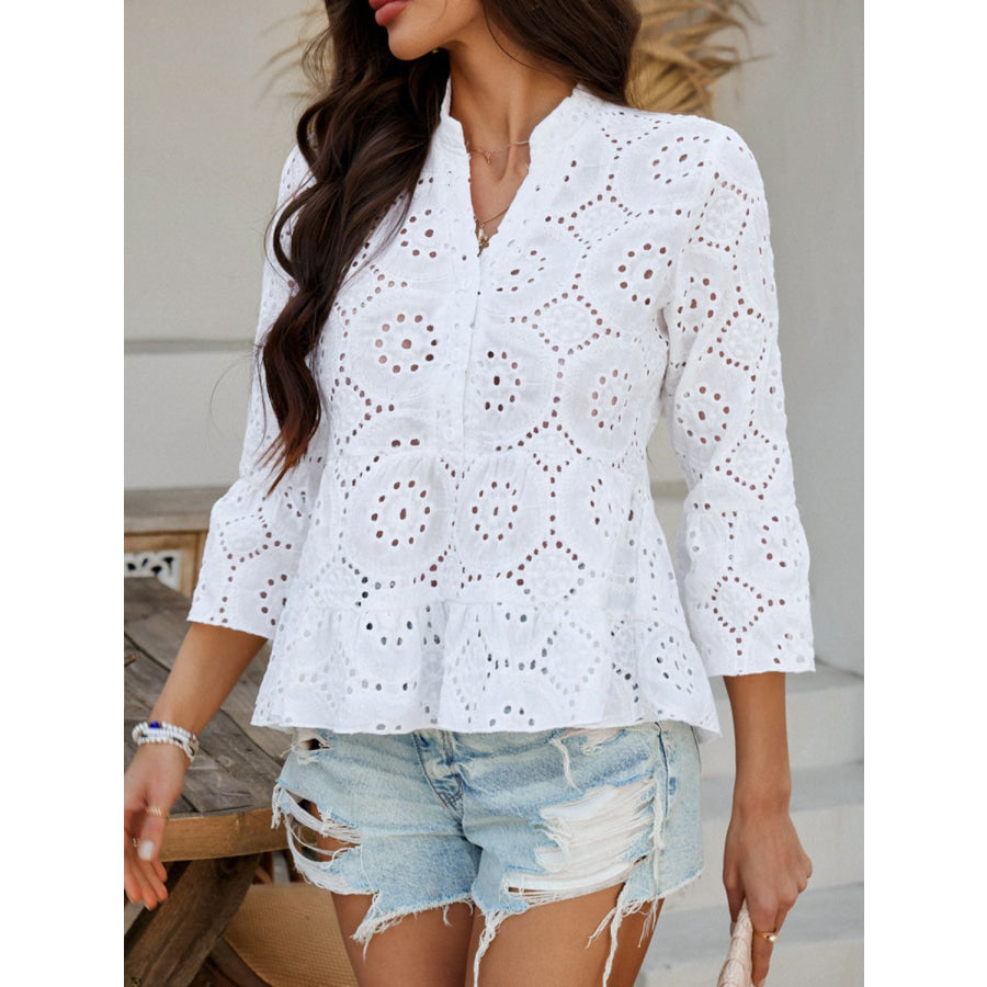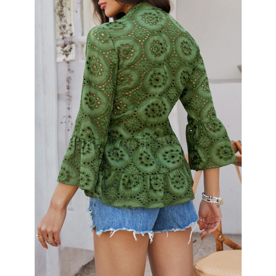Devine Half Button Flounce Sleeve Peplum Blouse