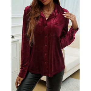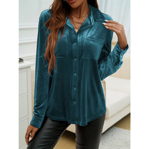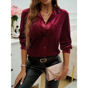 Devine Pocketed Collared Neck Long Sleeve Shirt